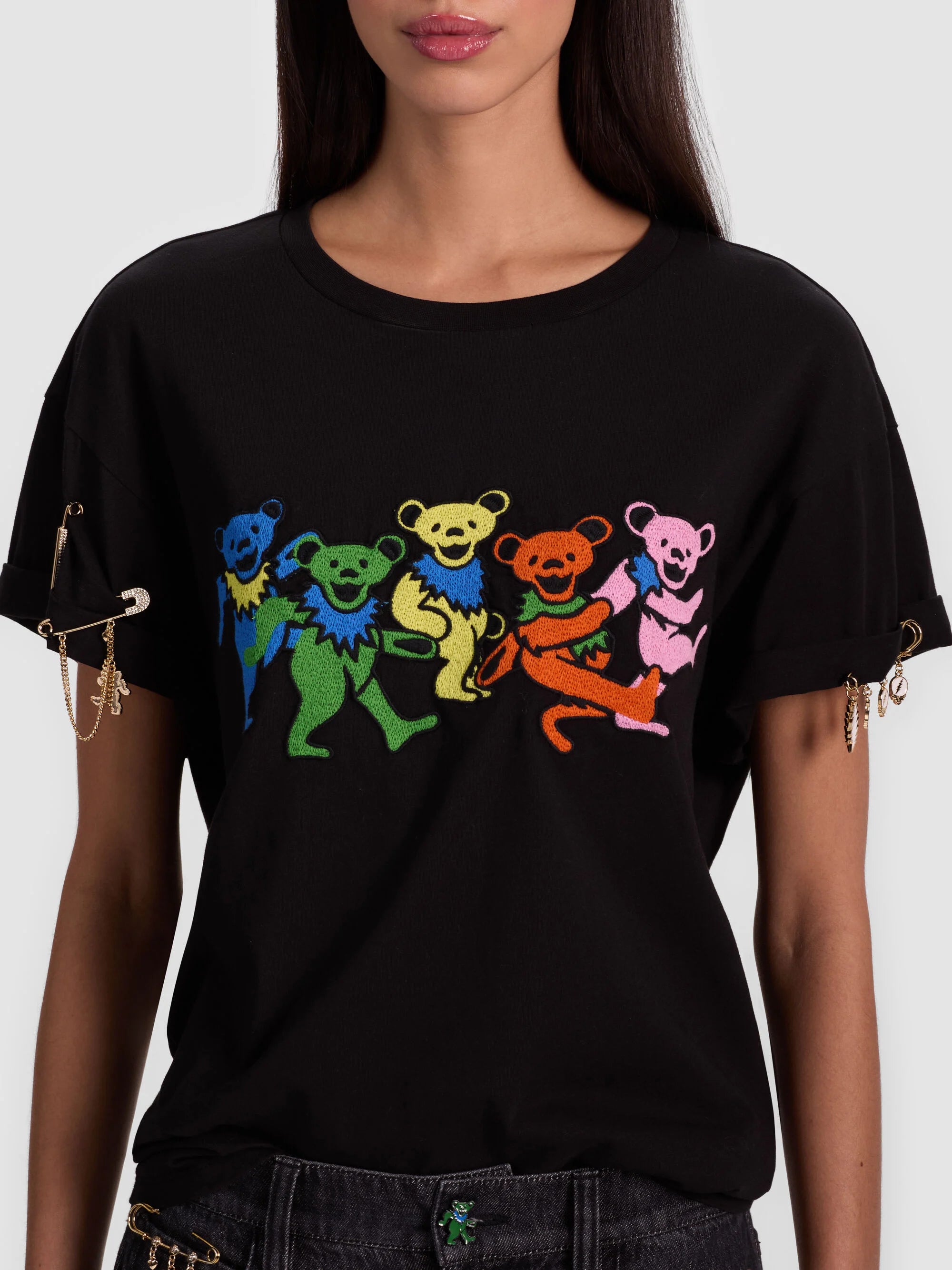 Discover the spirit of musical rebellion with the Alice + Olivia Evan Oversized Grateful Dead Tee. This reimagined collaboration captures the free-spirited essence of an iconic band through thoughtful design details. Crafted from soft cotton jersey, the oversized silhouette offers effortless comfort and that coveted borrowed-from-the-band aesthetic. Intricate embroidered patchwork and delicate charm embellishments at the sleeves elevate the classic tee into wearable art. Cuffed sleeves add a refined touch to the relaxed fit, making it perfect for anyone who channels vintage concert vibes and artistic expression into their everyday style.