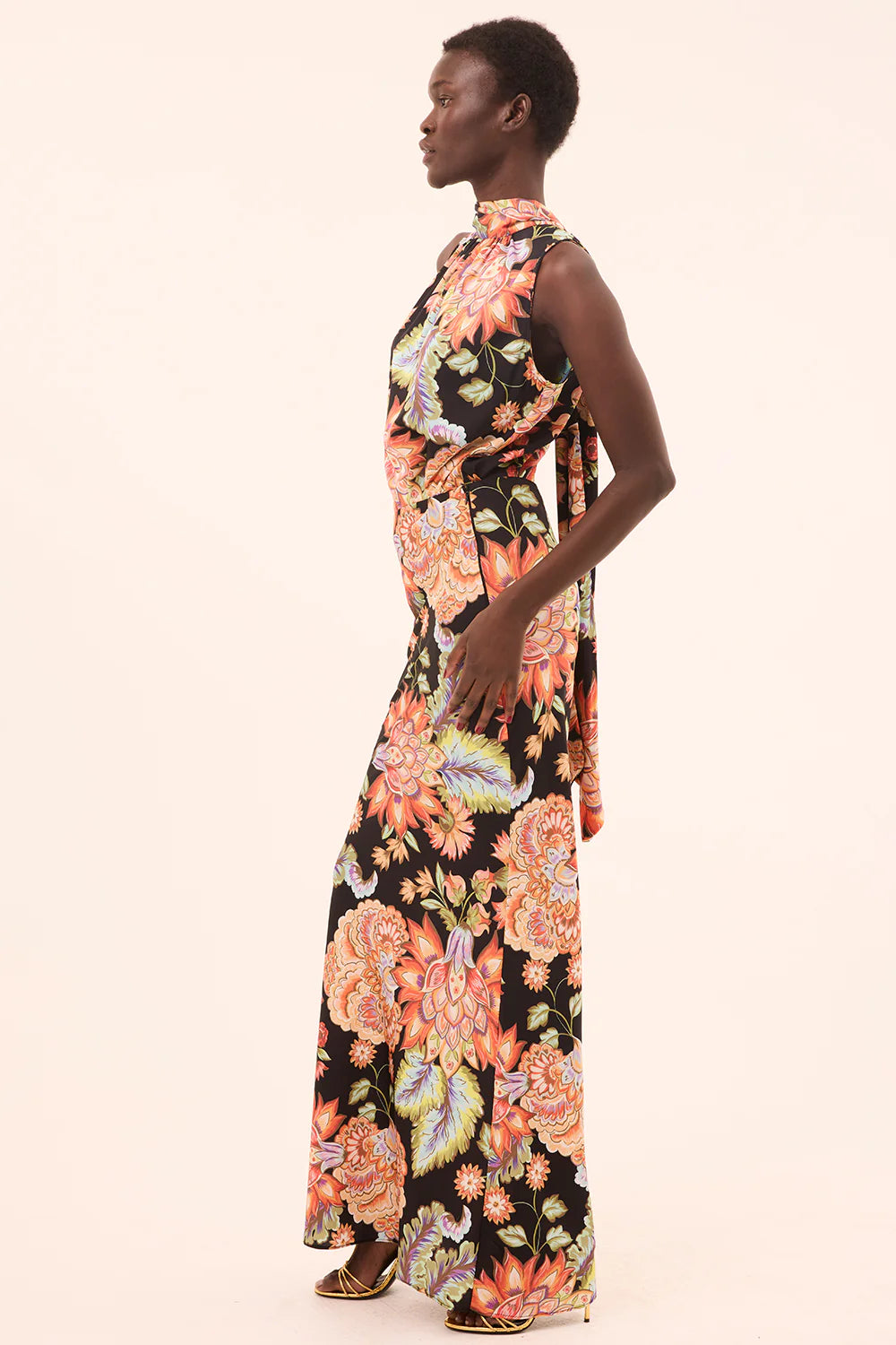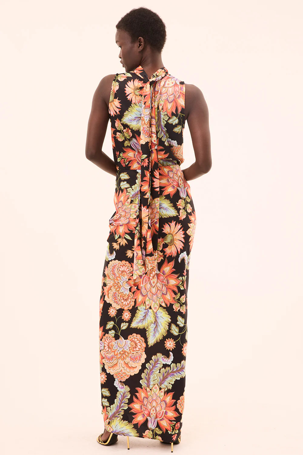 The Misa Luka Top brings effortless sophistication to your wardrobe with its striking Fiery Flora print satin and refined high-neck design. This sleeveless silhouette features an adjustable self-tie neckline that lets you customize your look while adding an elegant focal point. Versatile and polished, it transitions seamlessly from tailored wide-leg trousers for a chic office moment to layering under an oversized blazer for contemporary edge. Perfect for those who appreciate quality fabrics and pieces that work harder in their closet.