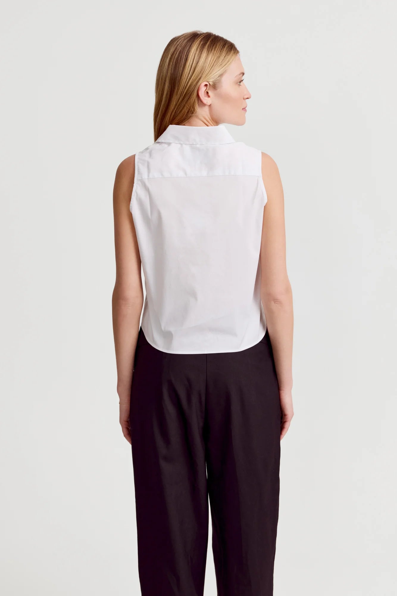The Shirt Boxy Cropped Sleeveless—designed for effortless style. This piece features a slightly relaxed, cropped silhouette that looks polished worn untucked. The standout innovation: patented No Gape® button technology eliminates unwanted blouse gape, delivering a seamless fit that actually works. Crafted from a premium blend of 75% cotton, 20% nylon, and 5% stretch, it offers breathability with just enough give for all-day comfort. A wardrobe essential that combines thoughtful engineering with understated sophistication.