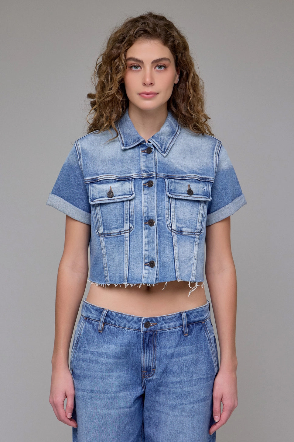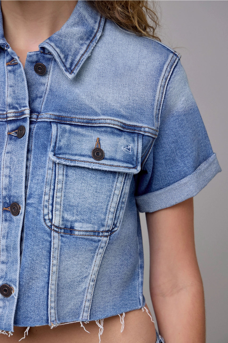Elevate your denim game with this cropped stretch trucker jacket in a versatile medium wash. Designed for the modern wardrobe, the fitted silhouette flatters your frame while the stretch fabric moves with you throughout the day. Perfect for layering over dresses, tees, or tanks, this timeless piece transitions seamlessly from casual weekends to night-out ready. The classic trucker style never goes out of fashion—invest in a jacket that works as hard as you do.