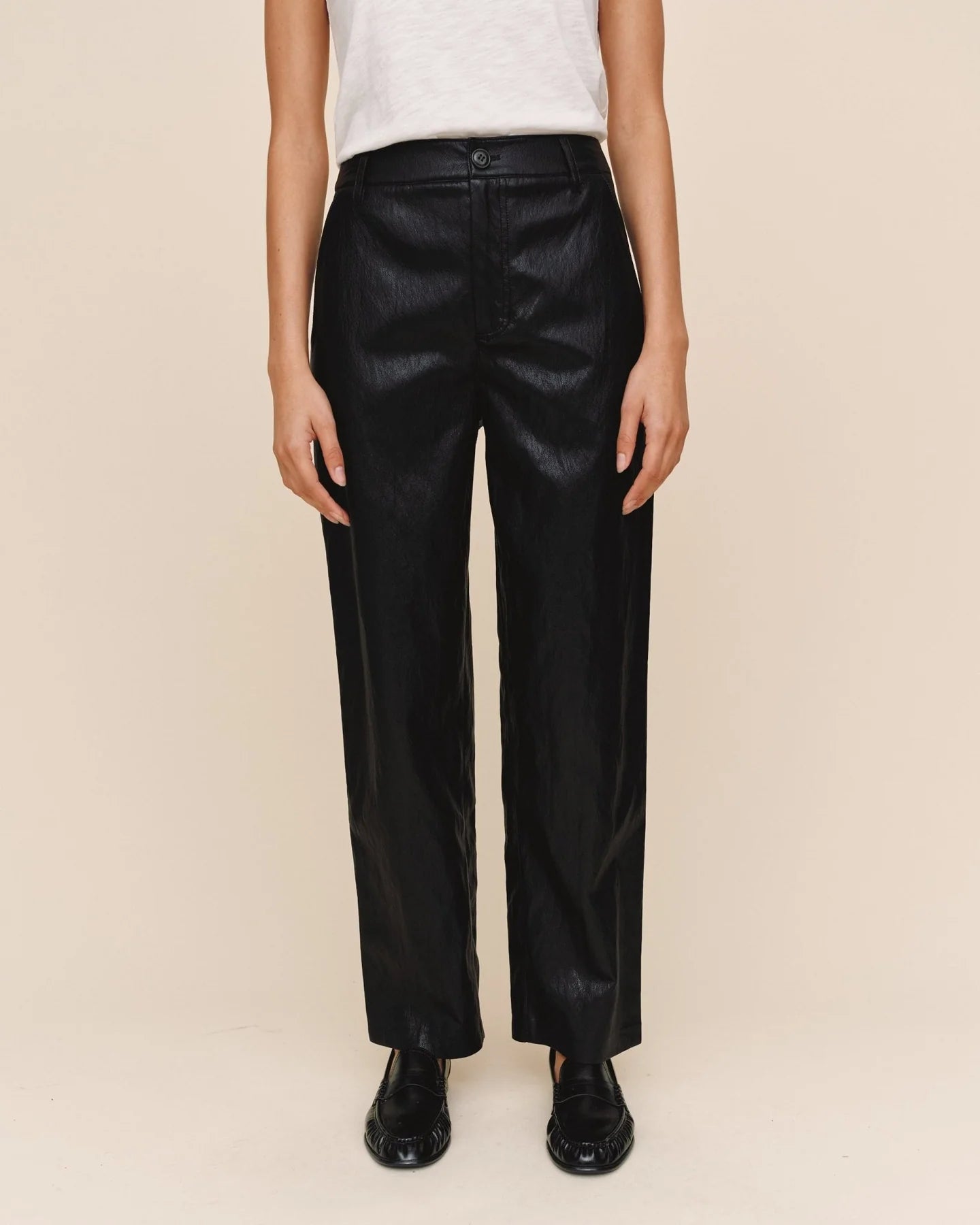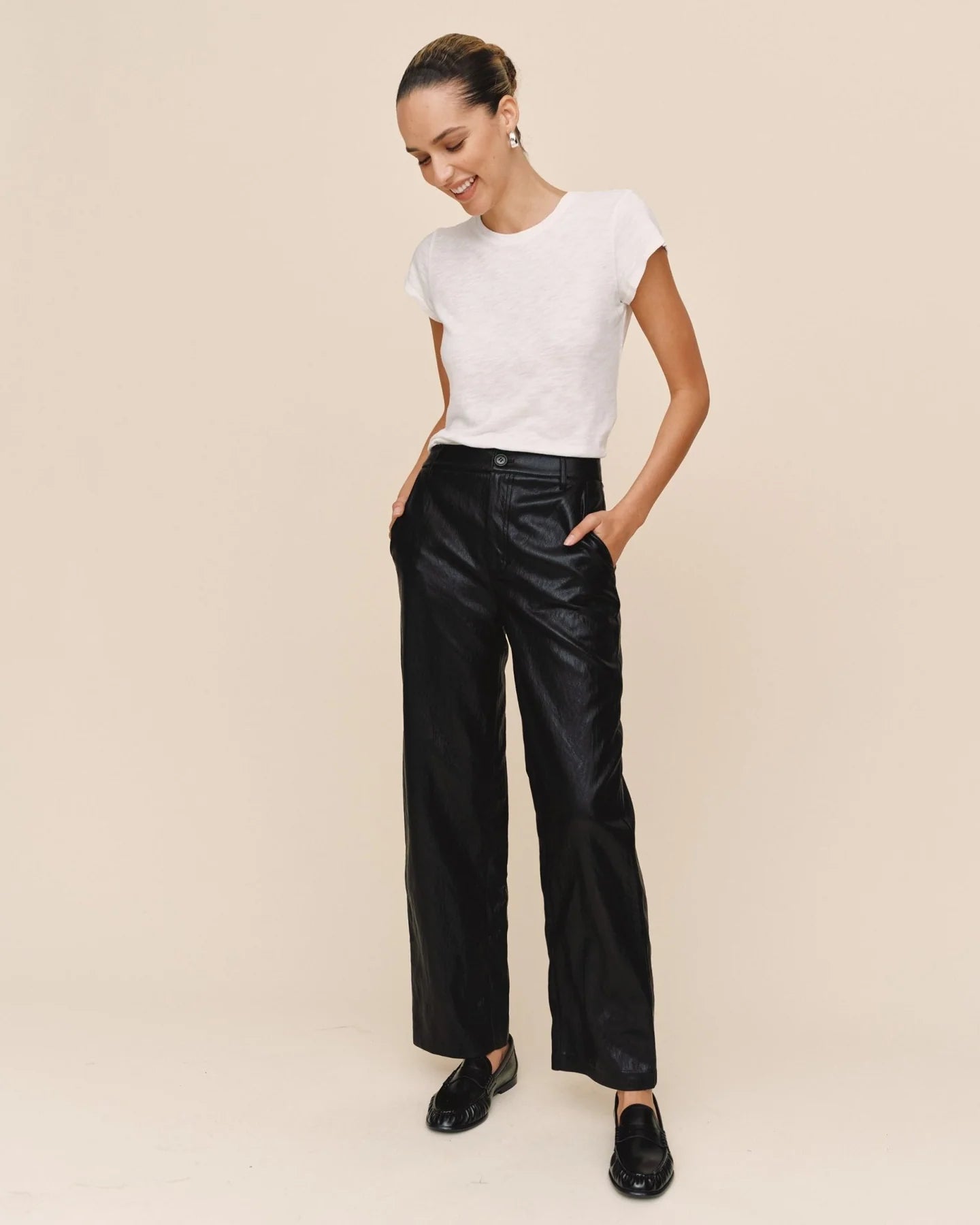 Elevate your winter wardrobe with the Bella Dahl Faux Leather Pants—a versatile essential that commands attention. The high-waisted silhouette flatters your frame while the straight leg delivers a polished, tailored aesthetic perfect for any occasion. Crafted with thoughtful details including functional side and back pockets, belt loops for effortless styling, and a secure button-zipper closure, these pants transition seamlessly from office to evening. The structured faux leather fabric brings an undeniable modern edge to your look. Style with the Cropped Faux Leather Top for an instantly chic ensemble.