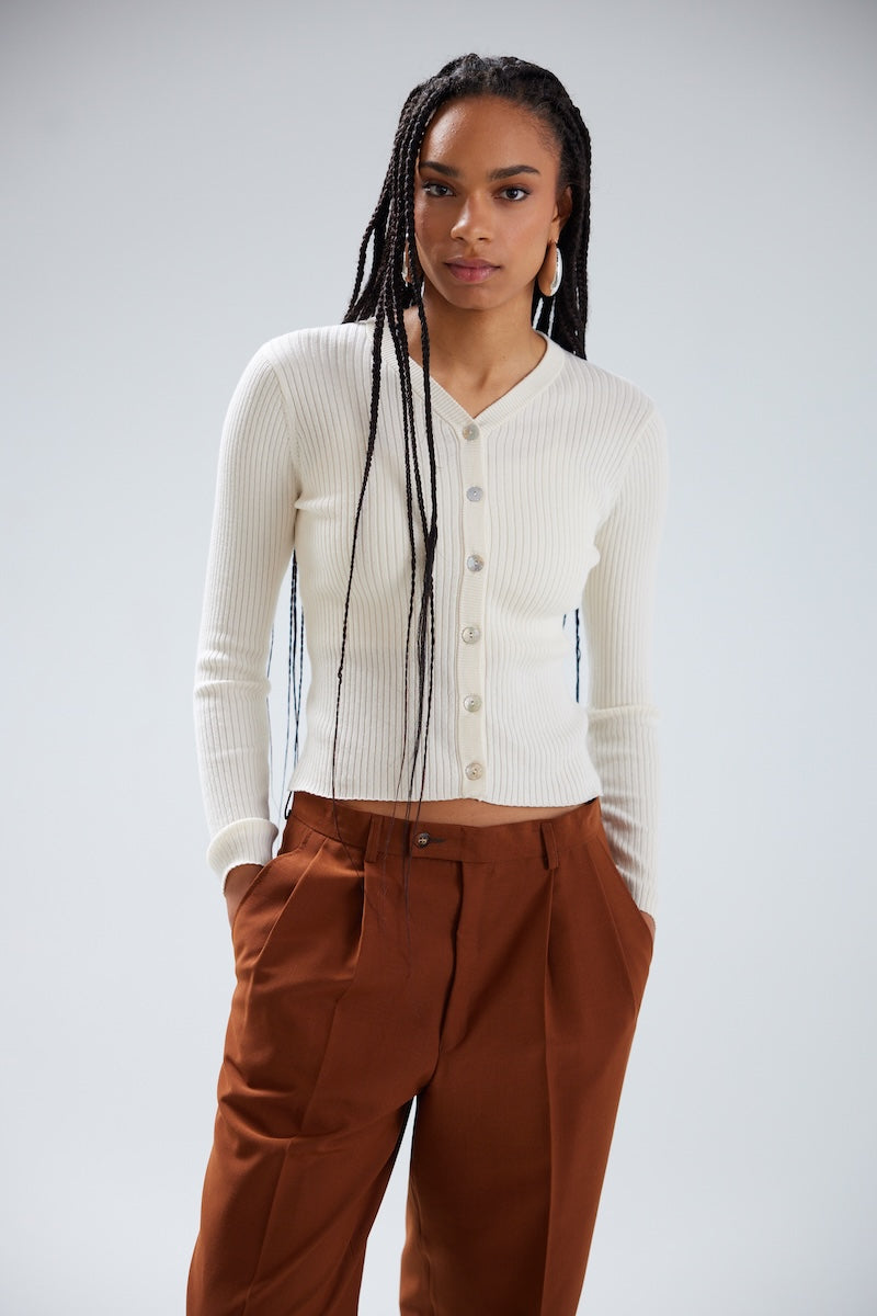 Elevate your everyday wardrobe with this luxurious high neck cardigan, expertly crafted from a premium blend of cotton, silk, and cashmere. The fitted silhouette flatters your frame while ribbed detailing adds refined texture and structure. Featuring a classic button front for effortless styling versatility, this piece transitions seamlessly from office to weekend. The soft, breathable fabric ensures all-day comfort without compromising on sophistication. A timeless investment that pairs beautifully with everything from tailored trousers to your favorite jeans.
