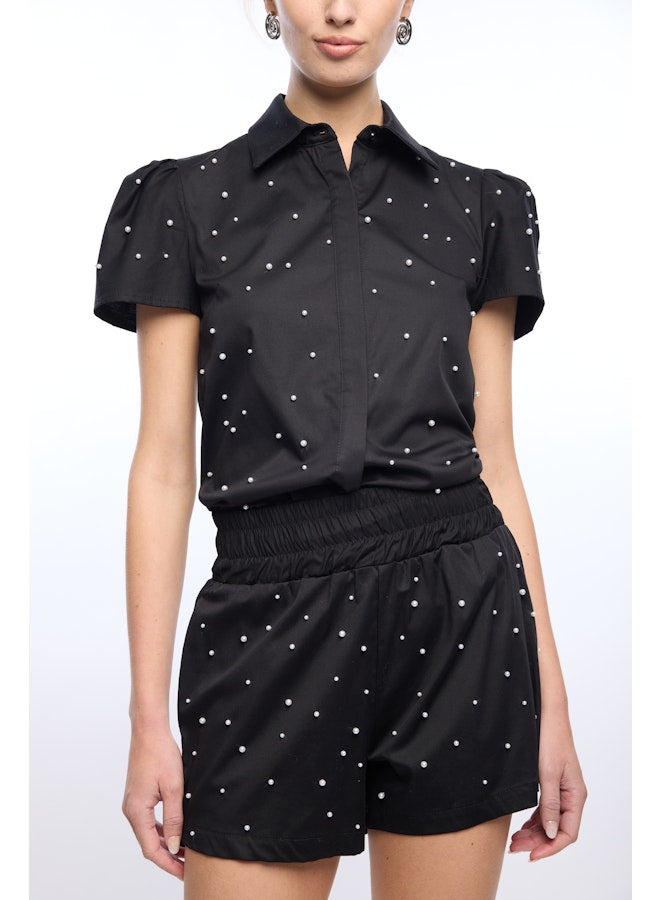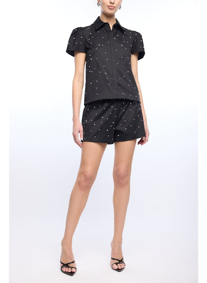 Elevate your everyday wardrobe with the Generation Love Murphy Pearl Embellished Shirt—where classic sophistication meets modern glamour. This crisp white stretch poplin button-down features delicate pearl embellishments scattered throughout, transforming a timeless staple into a statement piece. The perfectly tailored short sleeves and refined construction make it an instant go-to for any occasion. Dress it down with your favorite jeans for casual elegance, layer it under a blazer for professional polish, or pair it with a skirt for effortless chic. Versatile, flattering, and undeniably stylish, this shirt deserves a permanent spot in your closet.