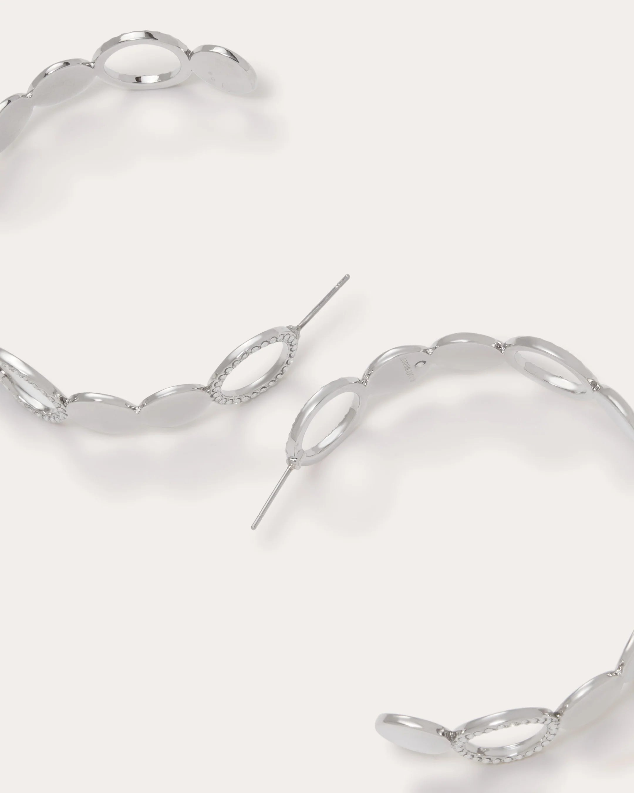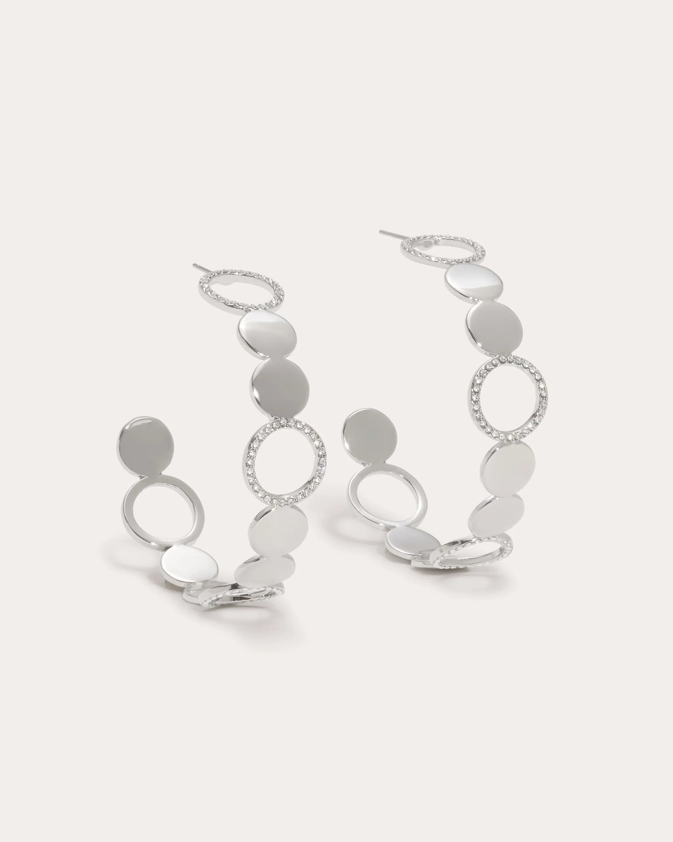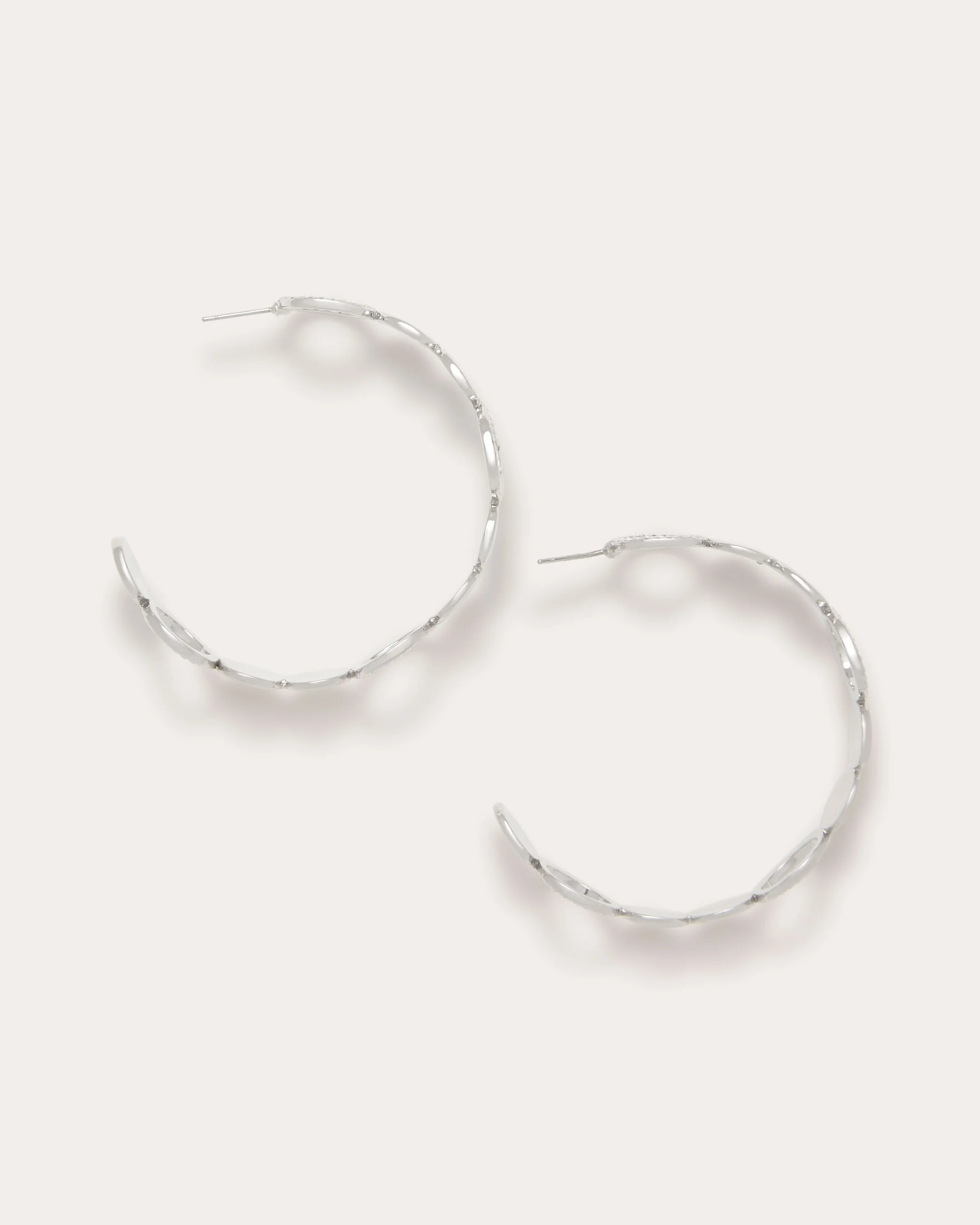 Discover timeless elegance with the Ramy Brook Tash Earrings. Crafted from brass with rhodium plating and adorned with sparkling cubic zirconia, these sophisticated hoops seamlessly transition from boardroom to celebration. Hypoallergenic and nickel-free, they're designed for sensitive skin without compromising on style. The perfect blend of modern glamour and everyday versatility—add that coveted sparkle to any outfit with confidence and comfort.