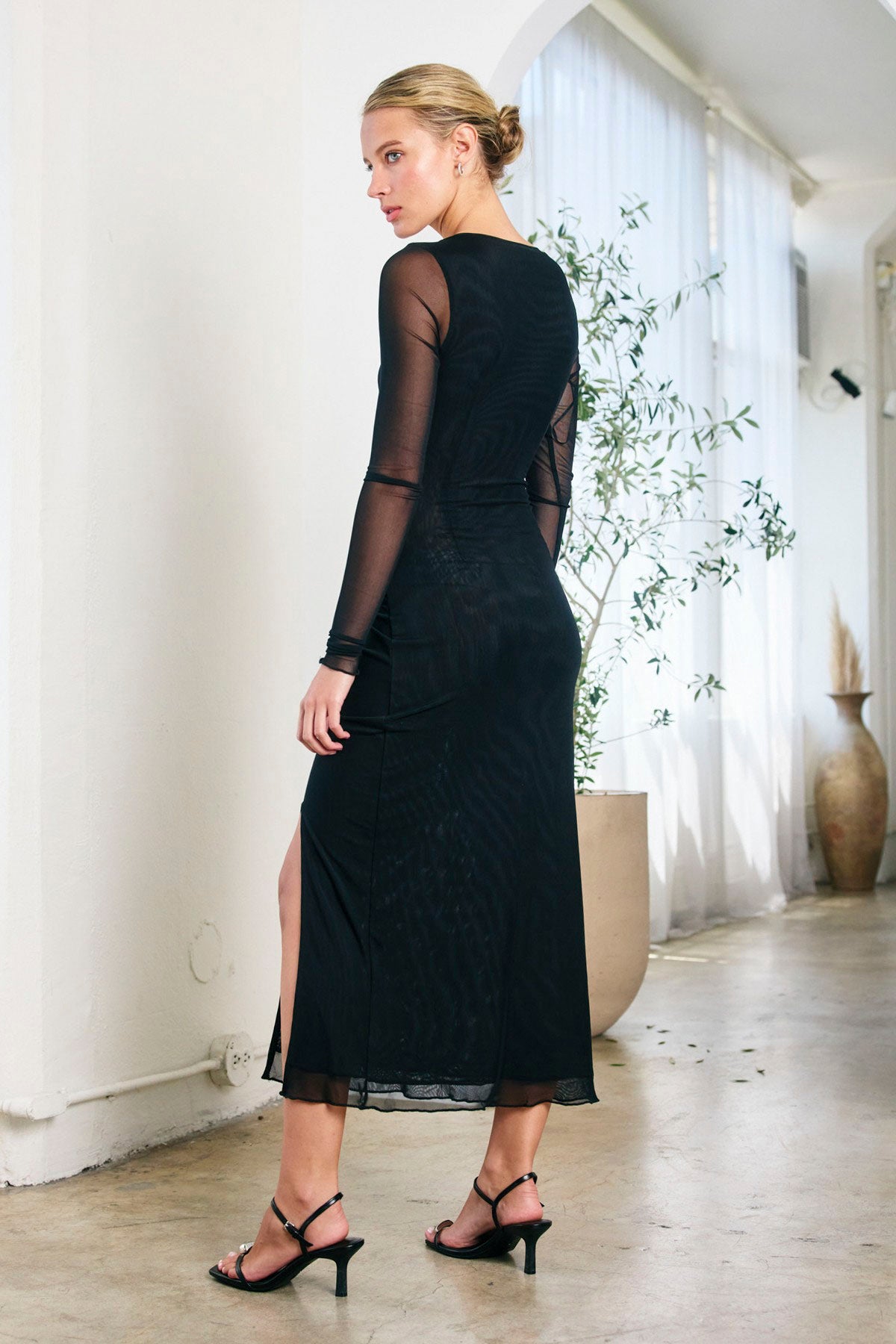 Make a statement at your next event in the Madison Night Out Mesh Dress, where contemporary design meets timeless sophistication. Sheer long sleeves and an artfully draped criss-cross ruching detail at the front create visual interest and flattering movement. The fully lined construction ensures comfort and confidence all evening long, while the convenient front slit adds both style and practicality. Designed with a simple pull-on silhouette, this dress lets you spend less time getting ready and more time enjoying your night. Perfect for cocktail parties, galas, or any occasion where you want to look effortlessly chic and refined.