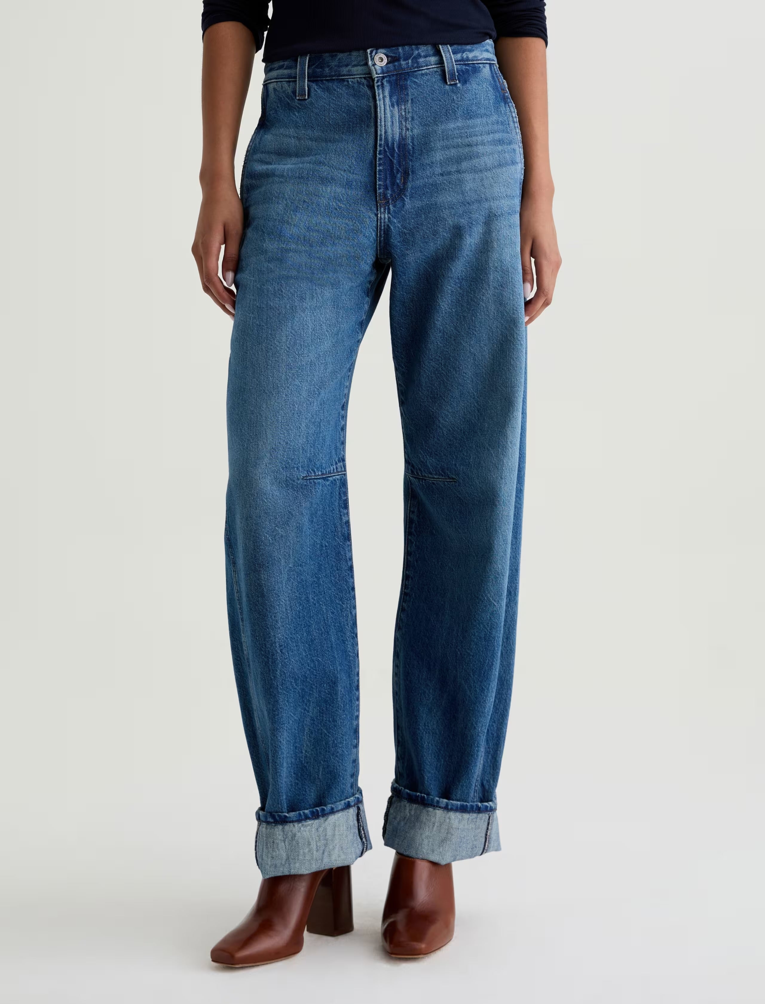 The AG Mercer Barrel Jeans combine a high-rise silhouette with a tailored cuffed hem for a sleek, modern look. Crafted from premium non-stretch denim sourced from Italy’s renowned Candiani Mill, these jeans maintain their shape while delivering a crisp, polished finish. Perfect for elevating casual or dressier outfits, their structured design offers versatility with effortless style.