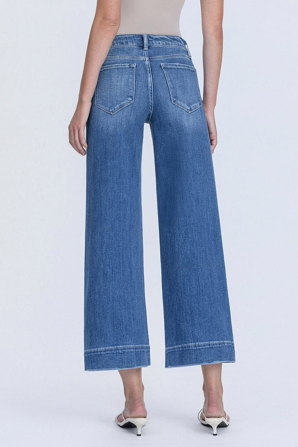 Experience comfort and style with the Flying Monkey Let It Rain High Rise Crop Trouser Wide Leg Jeans. Made from soft stretch denim, these jeans feature a high rise waist that flatters your figure and a cropped length perfect for showcasing your favorite shoes. The wide leg silhouette adds a modern, versatile edge to any outfit, effortlessly transitioning from casual days to chic evenings. Elevate your wardrobe with this must-have pair that blends comfort and trend with ease.