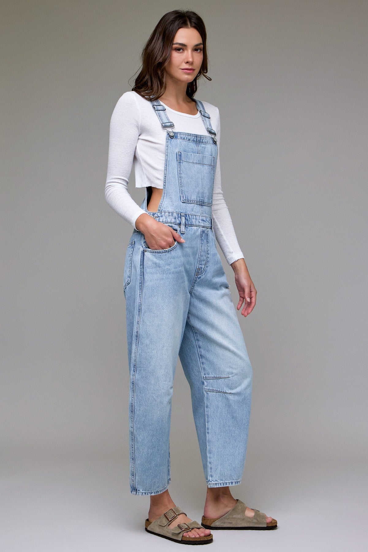 These Hidden Dylan Barrel Leg Denim Overalls offer a fresh twist on a classic style with their light wash and cropped barrel leg design. Crafted for comfort and ease, they provide a flattering fit while allowing freedom of movement. Perfect for layering or wearing solo, these overalls combine timeless denim durability with a modern silhouette, making them an essential piece for effortless, everyday wear. Elevate your wardrobe with this versatile and stylish staple.