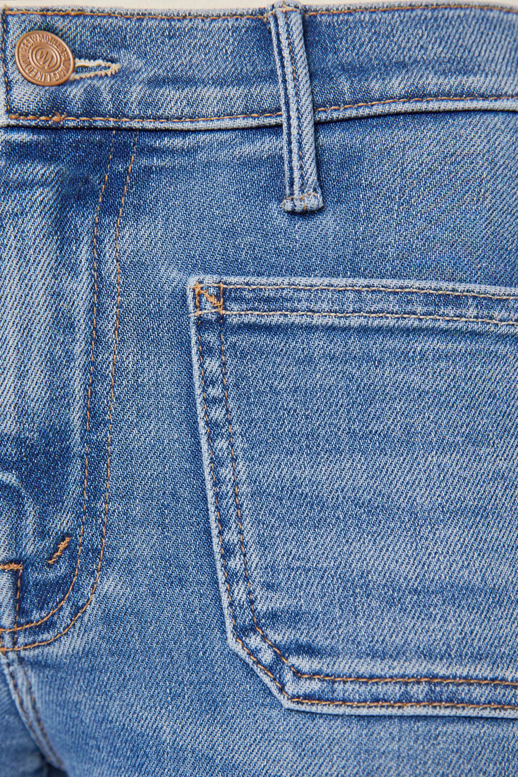 Discover the perfect blend of style and comfort with the Mother Patch Pocket Weekender Jeans in Poppin' Wheelies. These cult-favorite flares feature a flattering mid-rise and a clean hem that complements their 31-inch inseam. Crafted from stretch denim, they offer a perfect fit and ease of movement. The mid-blue wash, detailed with subtle whiskering and fading at the knees, adds a trendy touch. Complete with a zip fly and functional patch pockets, these jeans are your go-to choice for effortless, everyday chic. Elevate your wardrobe with a pair that moves with you.