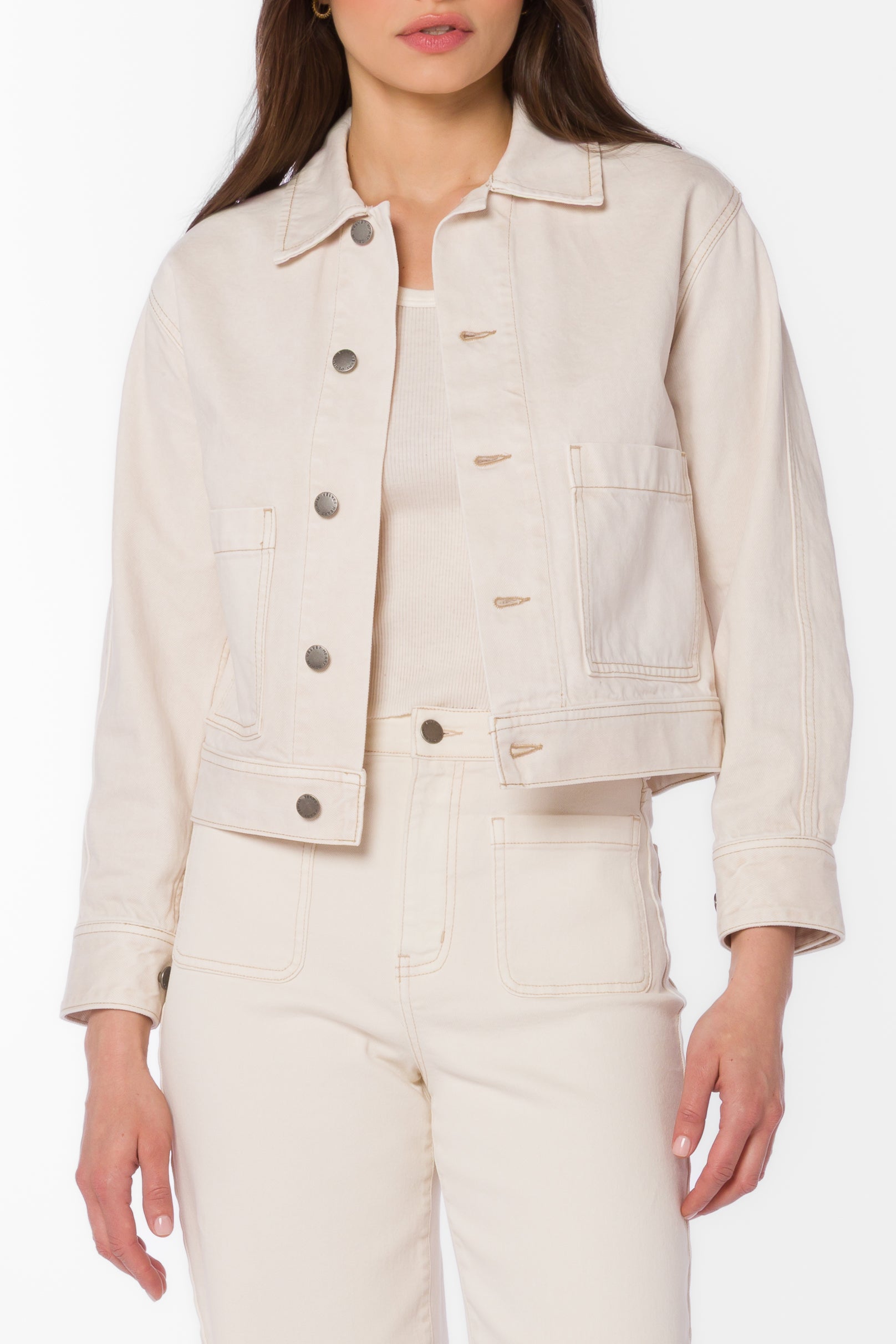 Crafted for effortless style, this long-sleeve desert denim cropped jacket strikes the perfect balance between structure and ease. The classic collar frames your face while the cropped silhouette flatters every frame. Functional front pockets keep essentials within reach without sacrificing the clean, editorial aesthetic. Versatile enough to layer over dresses or pair with your favorite denim, this piece becomes an instant wardrobe essential that transitions seamlessly from season to season.