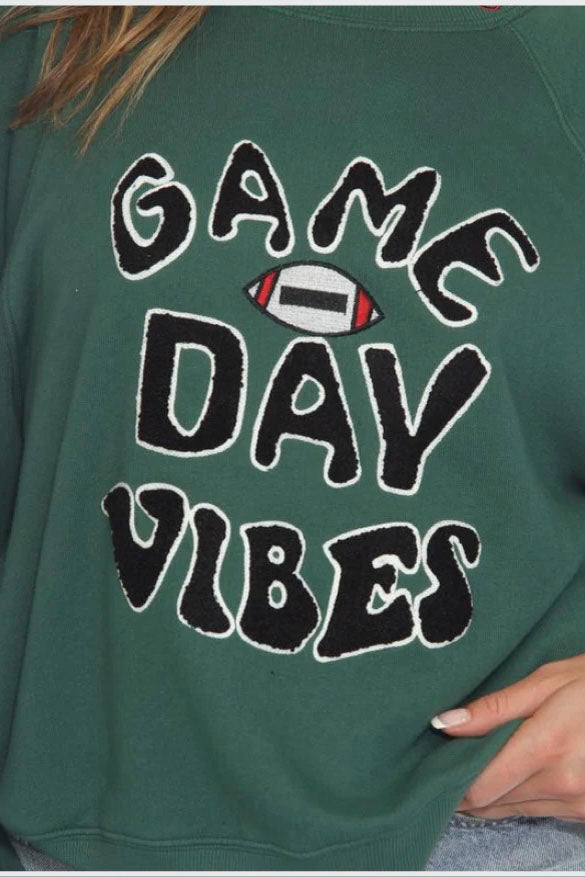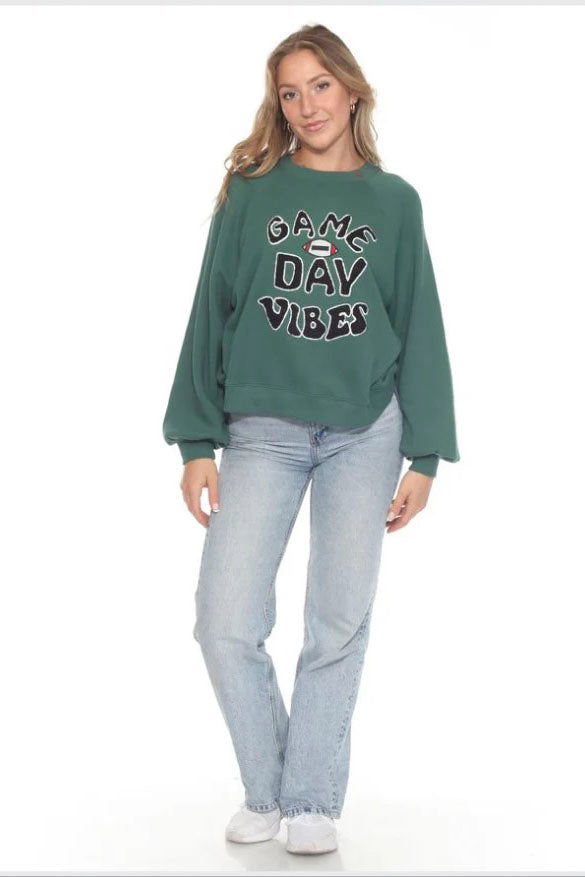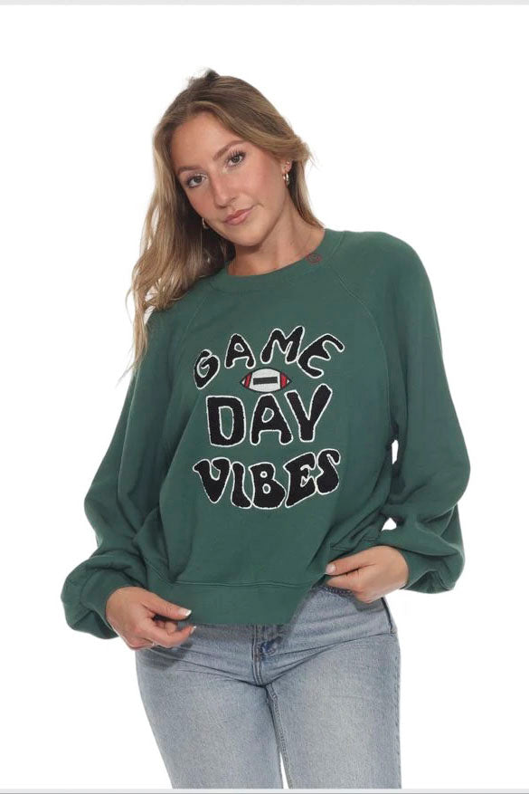 Elevate your game day style with the Just Madison Game Day Vibes Crewneck Sweatshirt in Dark Green. Crafted for comfort and durability, this cozy sweatshirt keeps you warm while showcasing your team spirit. Its rich dark green shade pairs effortlessly with your favorite fan gear, making it the perfect choice for cheering on in any weather. Stay comfortable, stylish, and ready to celebrate every win.