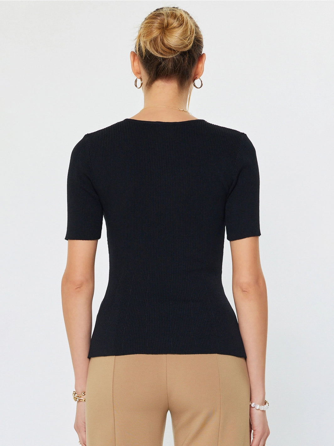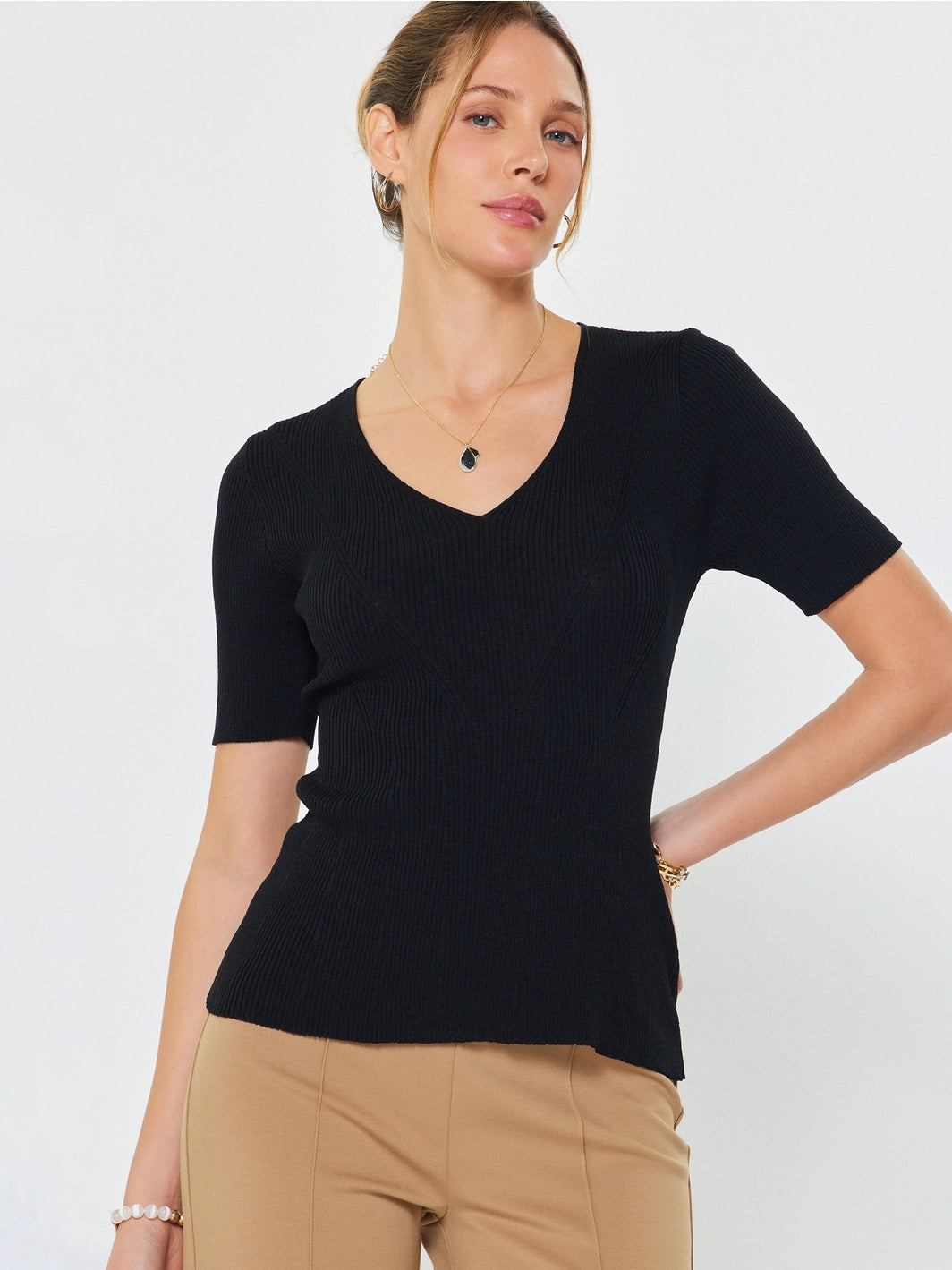 Elevate your everyday wardrobe with this fitted ribbed sweater top from Current Air. The classic V-neckline and short sleeves create a versatile piece that transitions seamlessly from casual to polished. Crafted with a slim silhouette, it hugs your frame for a flattering, modern look that pairs effortlessly with jeans, skirts, or tailored trousers.