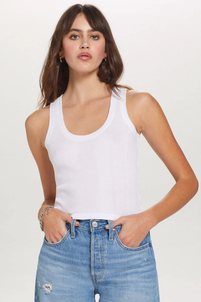 Elevate your everyday essentials with the Goldie Ribbed Cropped Tank Top—a wardrobe staple designed for those who appreciate quality and style. Crafted from 100% Peruvian pima cotton, this scoop-neck tank features a classic variegated-rib knit that delivers a soft, luxurious feel against your skin. The thoughtfully elevated hemline pairs perfectly with high-waisted bottoms, creating a polished silhouette that works from day to night. Whether layered under your favorite jacket or worn solo, this versatile piece proves that timeless design never goes out of style.