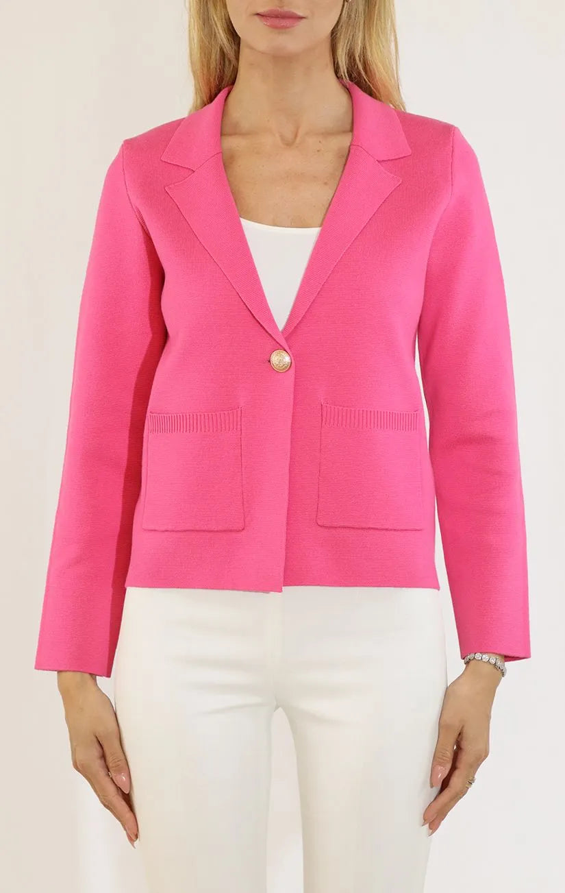 Elevate your everyday style with the Metric One Button Blazer—a modern take on a timeless essential. This shorter-length design offers a flattering silhouette that works seamlessly from office to weekend, while the single-button closure creates a sleek, streamlined look. Functional patch pockets add practical charm without compromising sophistication. Crafted from quality knit fabric, it delivers comfort and structure in one versatile piece that pairs effortlessly with everything in your wardrobe.