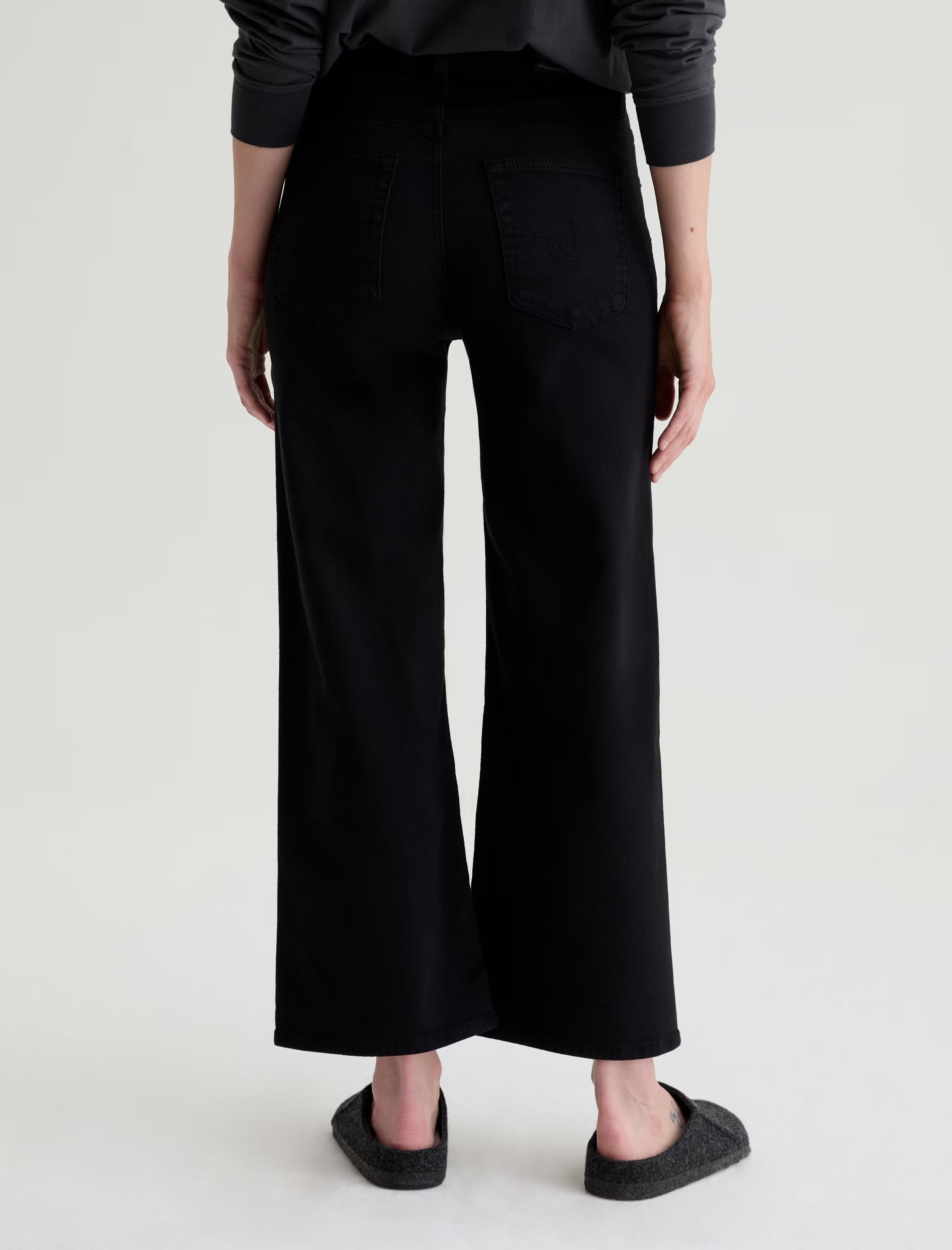 Discover effortless style with the AG Jeans Saige Wide Leg Crop in Black. This versatile women's jean combines comfort stretch denim with a flattering mid-rise fit and relaxed wide-leg silhouette. The dark wash finish offers timeless appeal while the thoughtfully designed cut allows unrestricted movement throughout your day. Perfect for pairing with everything from sneakers to heels, this crop jean delivers the ease and confidence you deserve with every wear.