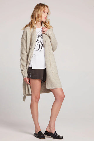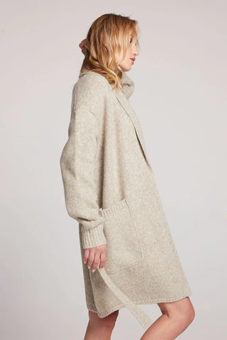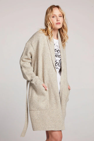 Introducing the Chaser Eve Sweater Duster, a modern twist on a classic silhouette. This piece effortlessly flows and can be cinched for a perfect fit with its waist tie. In a chic toasted coconut color, Eve is crafted from a luxurious blend of wool, acrylic, and nylon. Elevate your outerwear game with Eve!