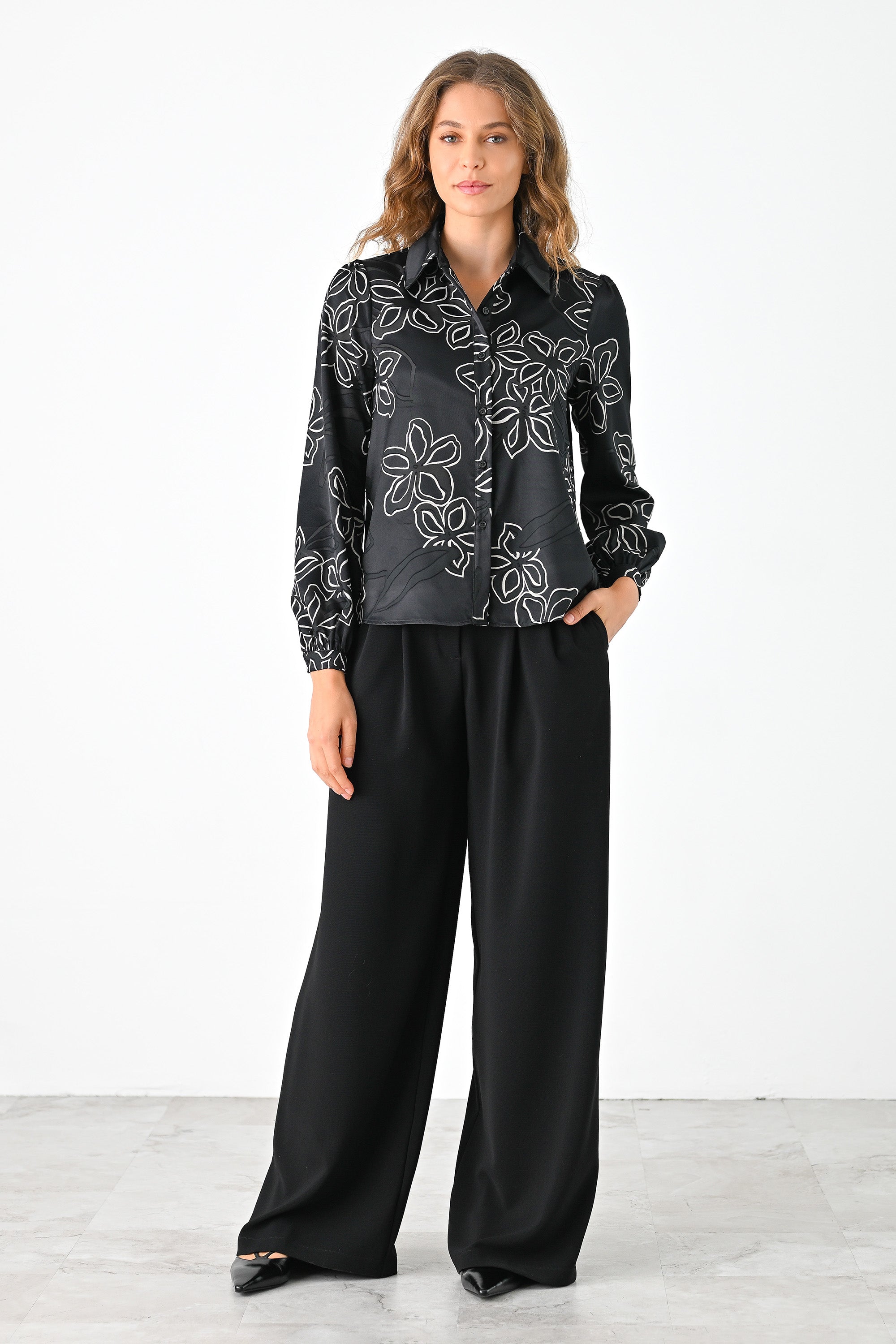 Elevate your wardrobe with this stunning Italian printed burnout satin shirt, featuring delicate white floral patterns that catch the light beautifully. The luxurious satin fabric drapes elegantly while the long sleeves and button-down silhouette offer timeless sophistication. Perfect for layering or wearing solo, this piece transitions seamlessly from day to evening, adding an effortless touch of refined style to any outfit. The intricate floral design brings movement and dimension, making it a versatile essential that works as hard as you do.