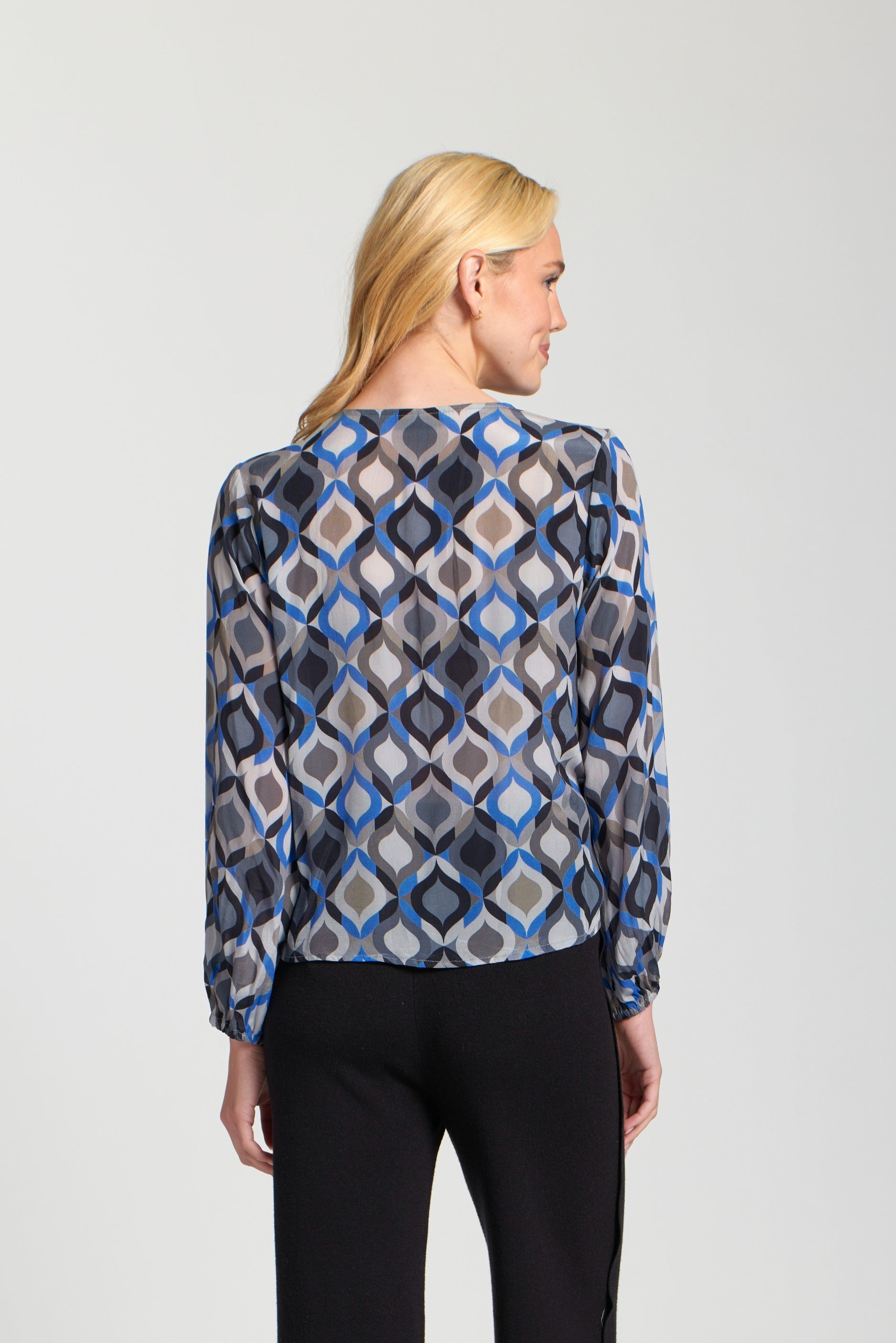 The APNY Tie Front Top combines style and comfort with its flattering V-neck and chic tie-front design. Featuring long sleeves and a breathable fabric, this top keeps you comfortable while showcasing a vibrant blue multi-colored print that adds a splash of color to any outfit. Its relaxed fit pairs perfectly with skinny jeans for a polished look or with shorts for casual ease. A timeless addition to your wardrobe that elevates your everyday style effortlessly.