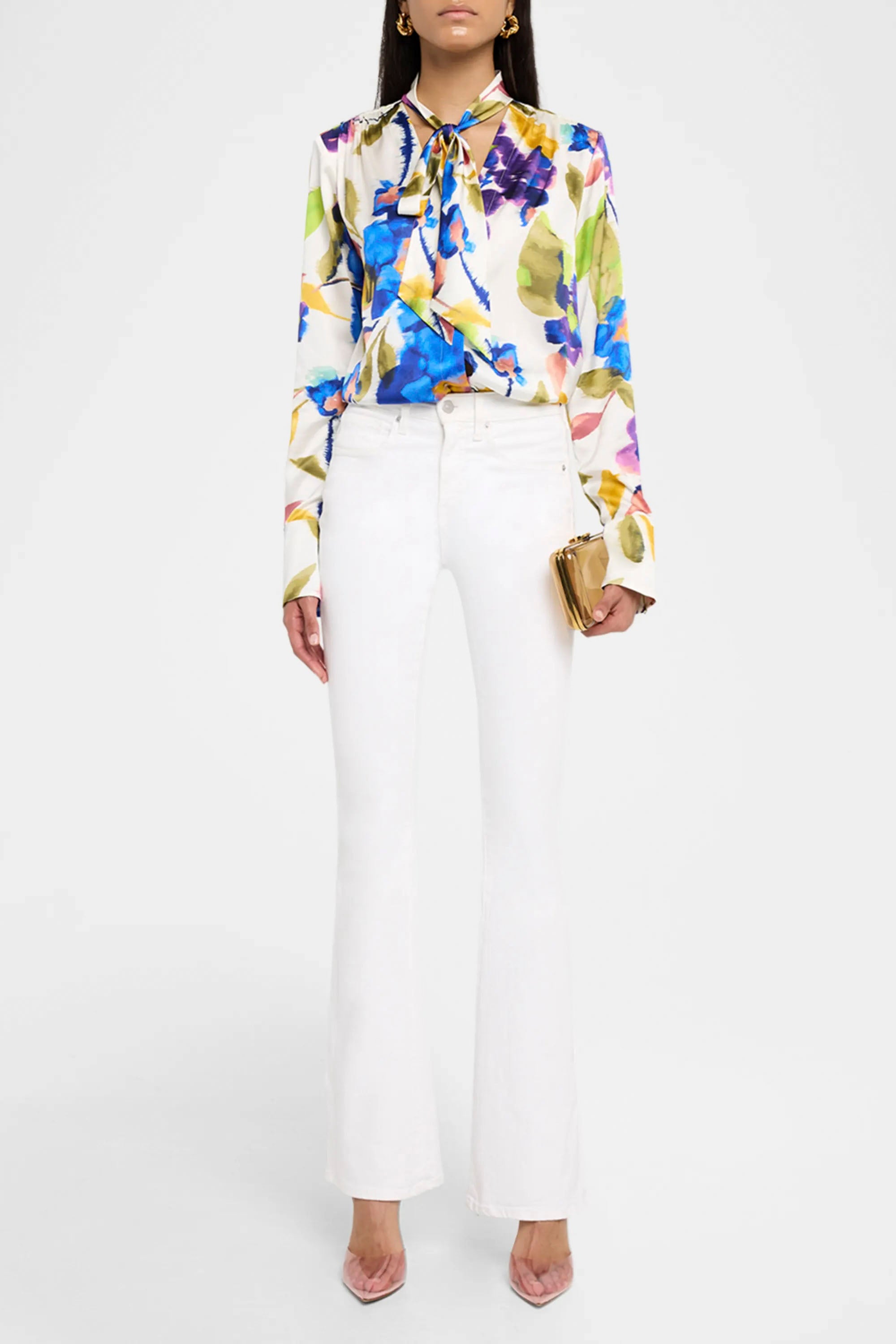 Elevate your wardrobe with the Ramy Brook Veera silk blouse, where artistic flair meets everyday sophistication. This stunning piece showcases painterly floral designs that add visual interest and personality to any outfit. The self-tie neck V-neckline creates a flattering silhouette, while concealed buttons offer a polished, seamless look. Long sleeves with button cuffs provide versatility for layering and styling. Crafted from luxurious silk blended with elastane, the fabric drapes beautifully while maintaining its shape. The relaxed fit and hip-length cut deliver comfort without sacrificing elegance, making this blouse perfect for transitioning from office to evening occasions.