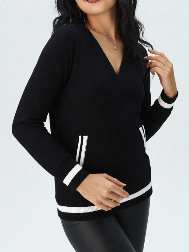 Elevate your casual wardrobe with the Red Haute Hoodie, a luxuriously soft knit piece designed for effortless style. Featuring eye-catching contrasting stripes on the pockets and hem, this hoodie delivers modern flair with everyday comfort. The premium knit fabric drapes beautifully while keeping you warm and cozy. Complete the look by pairing it with the matching tank top and pants for a coordinated, put-together ensemble that works from home to weekend outings.