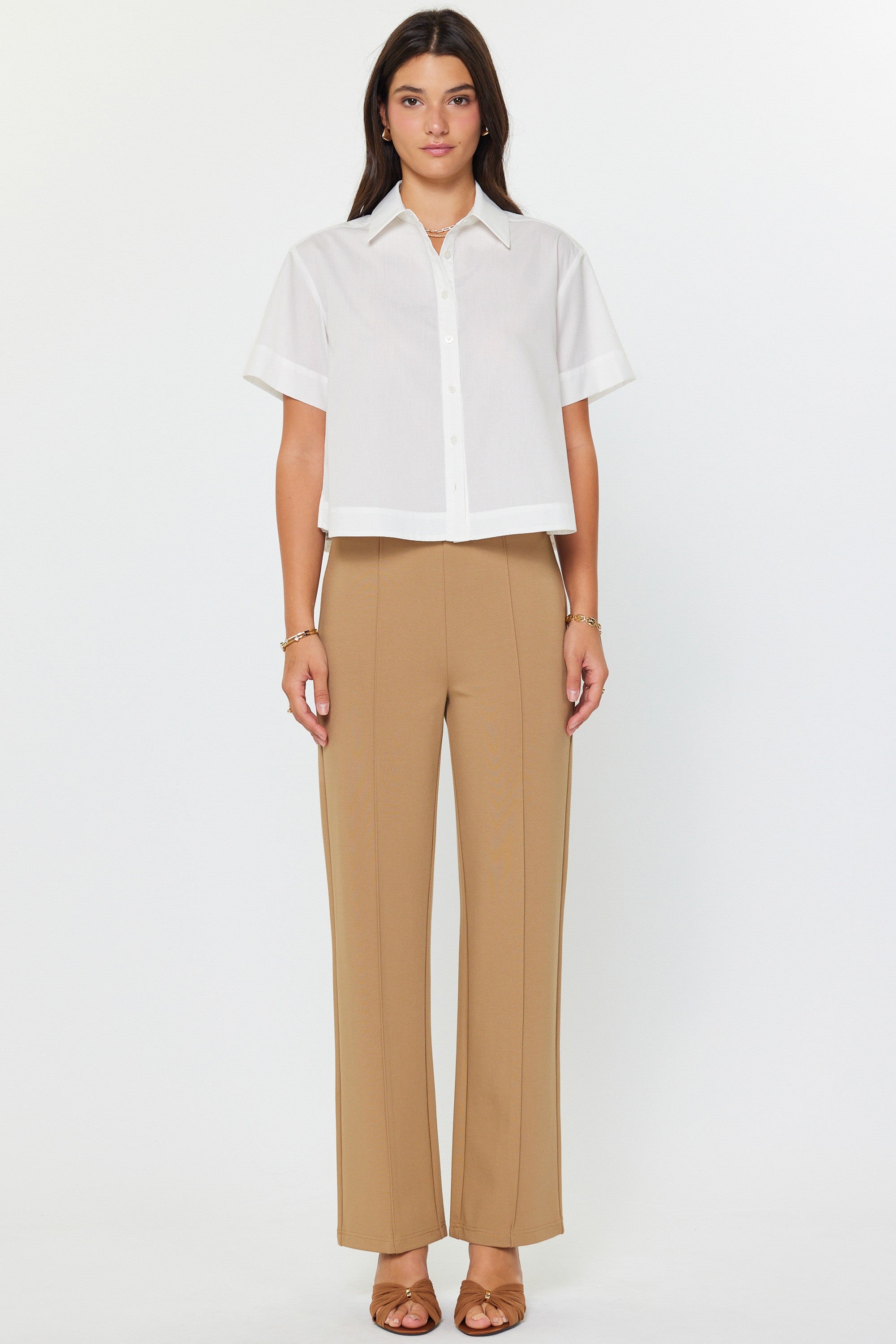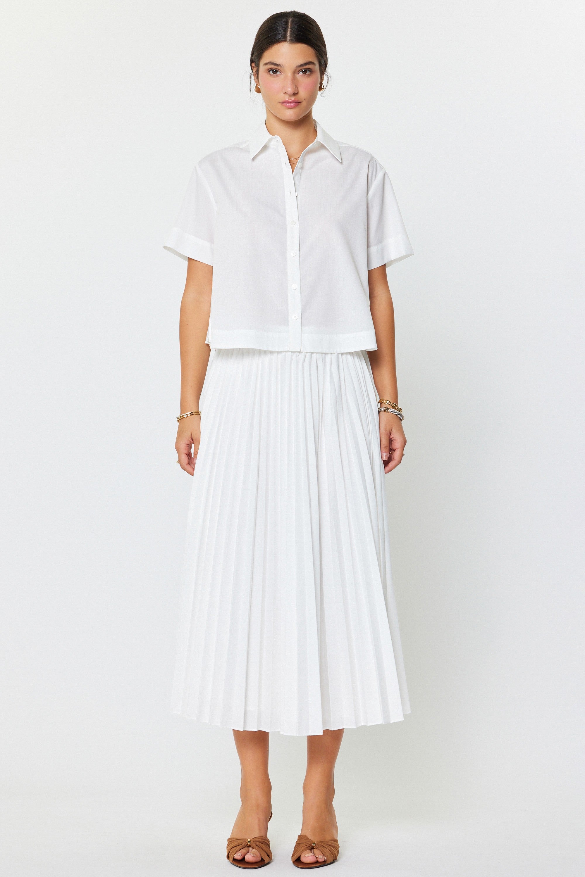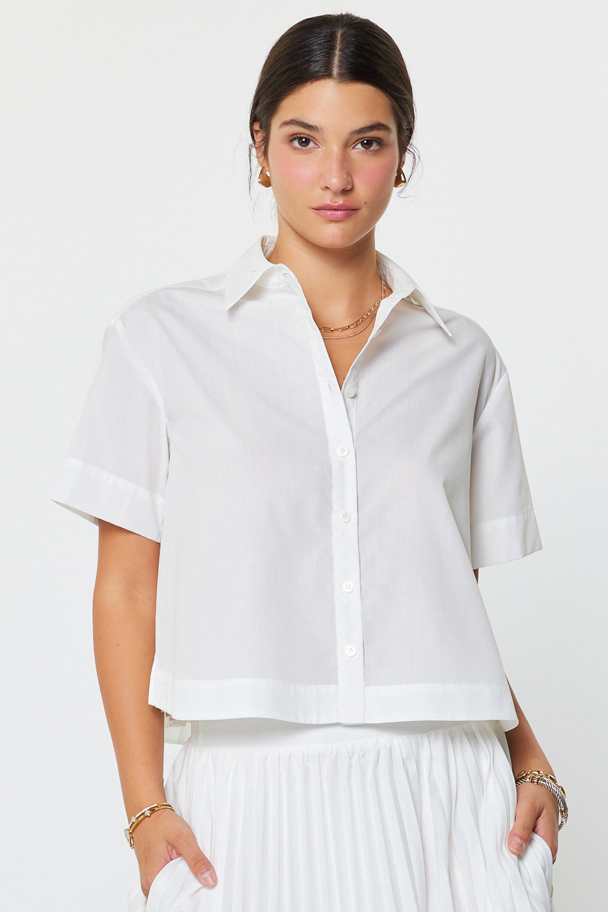 The Madison Cropped Pleated Back Shirt delivers effortless sophistication with its clean, modern silhouette. Featuring a classic button-down collar and short sleeves, this piece pairs timeless tailoring with contemporary ease. The pleated back adds subtle dimension and movement, while the cropped, boxy fit flatters without clinging—perfect for layering or wearing solo. A versatile essential that transitions seamlessly from casual to polished.