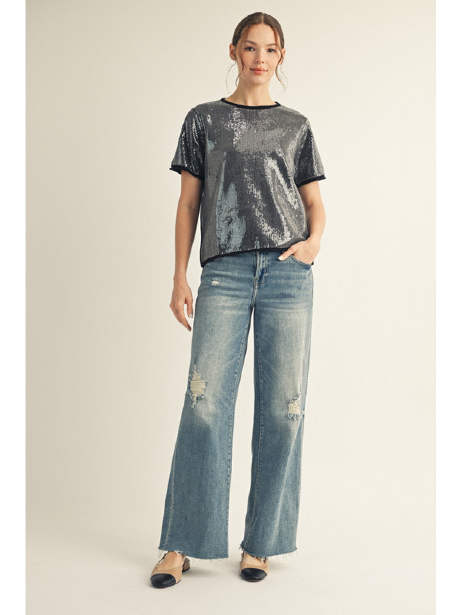 Elevate your style with the Born in March Sequin Sweater, featuring delicate tiny sequins for a subtle shimmer. Its short sleeves and raw cut edges add a contemporary edge, making it perfect for both casual outings and special occasions. This top effortlessly blends comfort with eye-catching detail to keep you shining wherever you go.