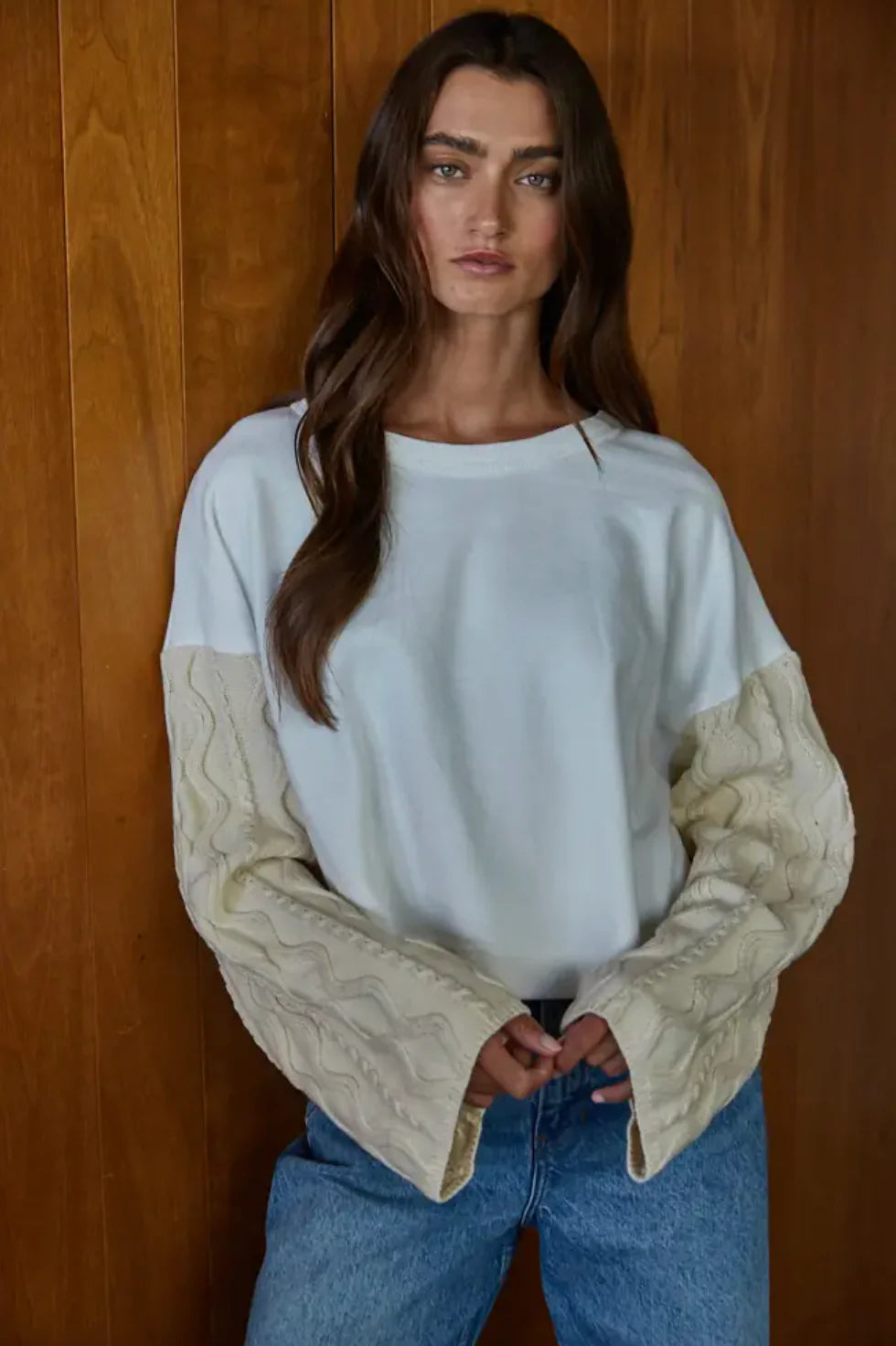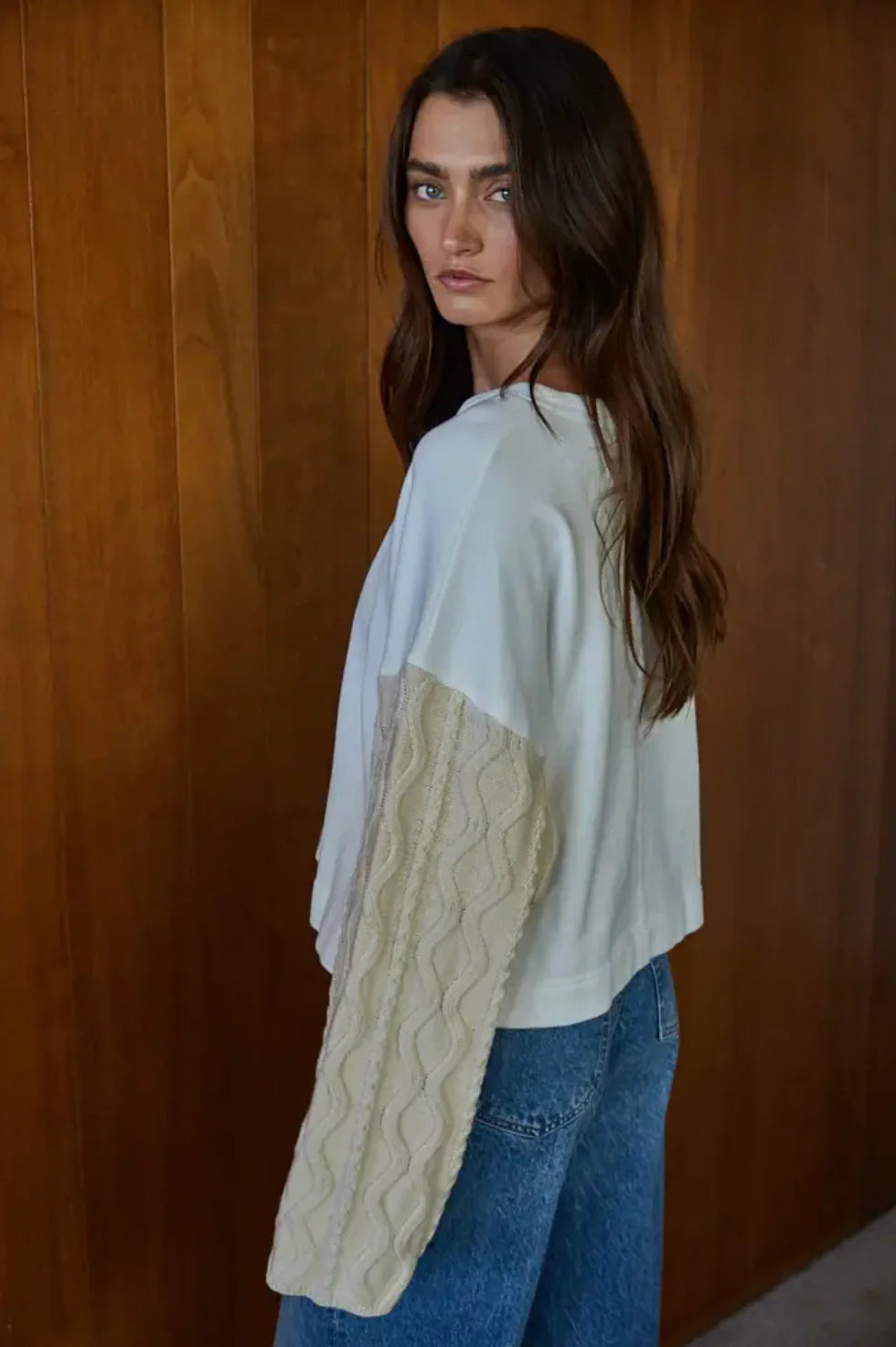 Elevate your everyday wardrobe with the Talk to Angels Cable Sleeve Sweater, a sophisticated blend of comfort and style. Crafted from soft cotton French terry, this pullover features a classic round neckline and long sleeves adorned with eye-catching cable knit detailing. The relaxed fit makes it perfect for layering or wearing solo, while the premium fabric ensures breathability and durability through countless wears. Whether you're dressing up for brunch or keeping it casual at home, this versatile sweater delivers effortless elegance that works season after season.