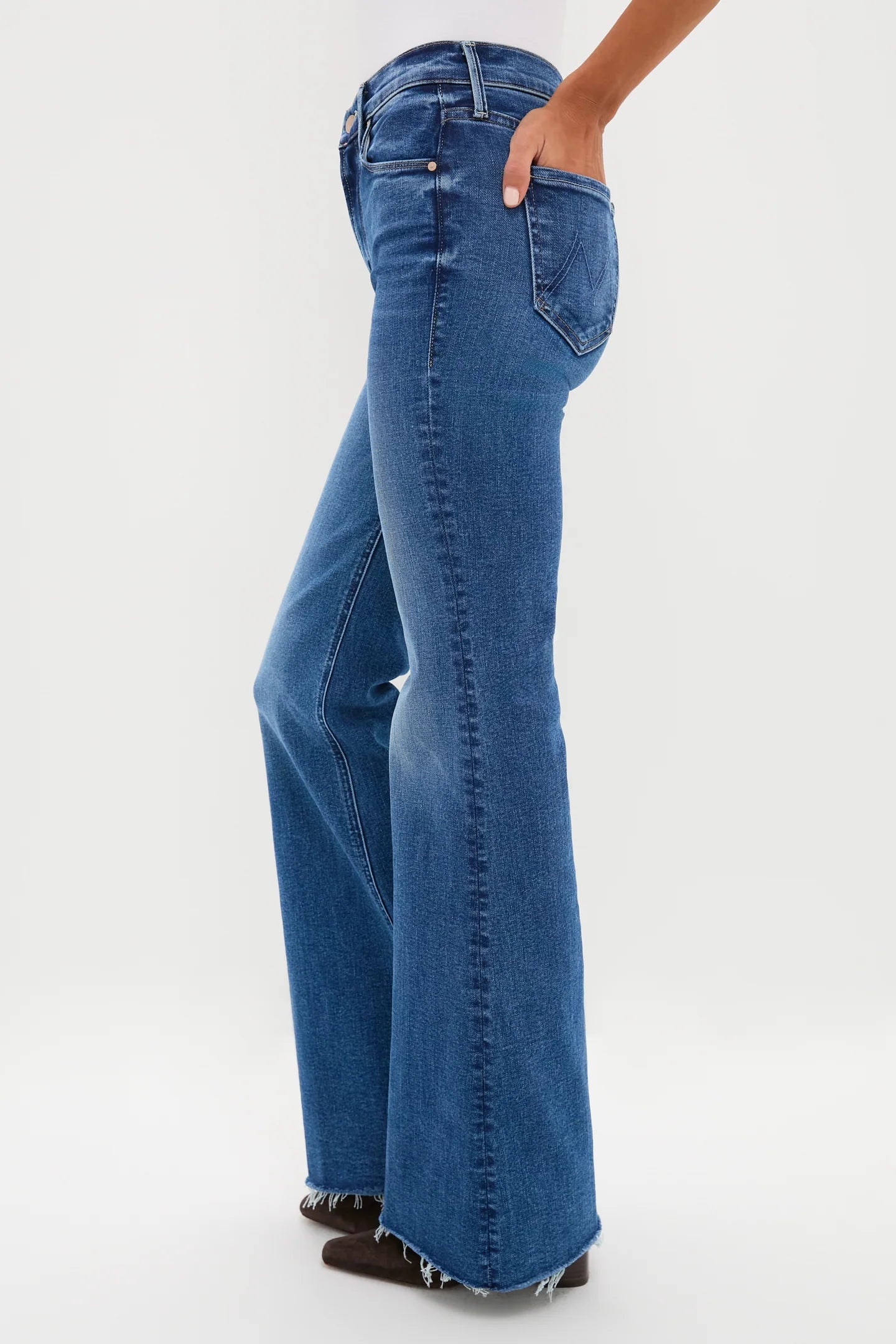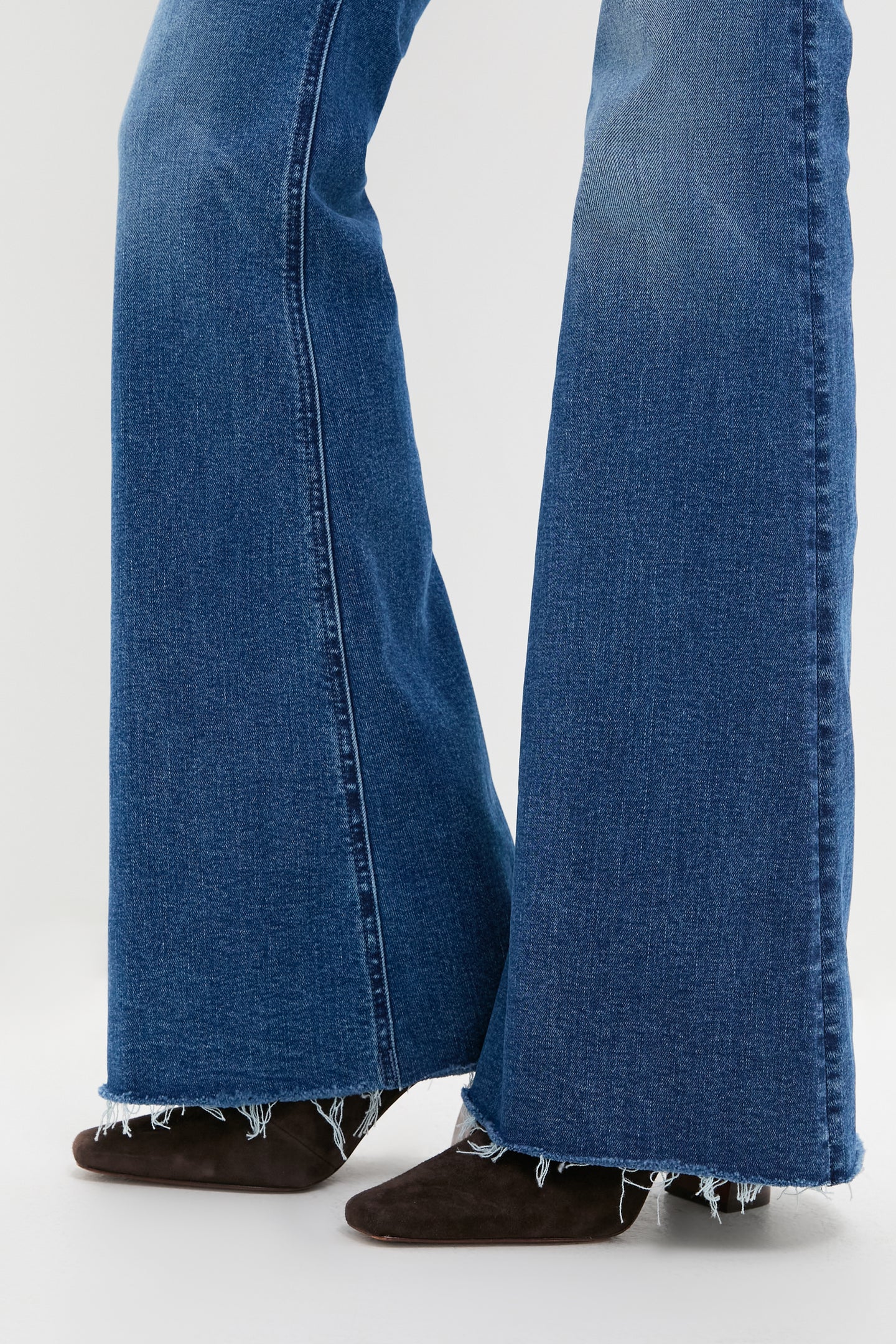 Elevate your everyday style with the Mother Doozy Sneak Fray Jeans in mid-blue. These high-rise flares feature a flattering 32-inch inseam, artfully distressed knees, and a trendy frayed hem that adds instant edge. Crafted from comfortable stretch denim with subtle whiskering and fading, they're designed to move with you. Style them with your favorite tees, knits, boots, or flats—these versatile jeans transition seamlessly from casual outings to weekend adventures. A wardrobe essential that delivers both comfort and contemporary flair.