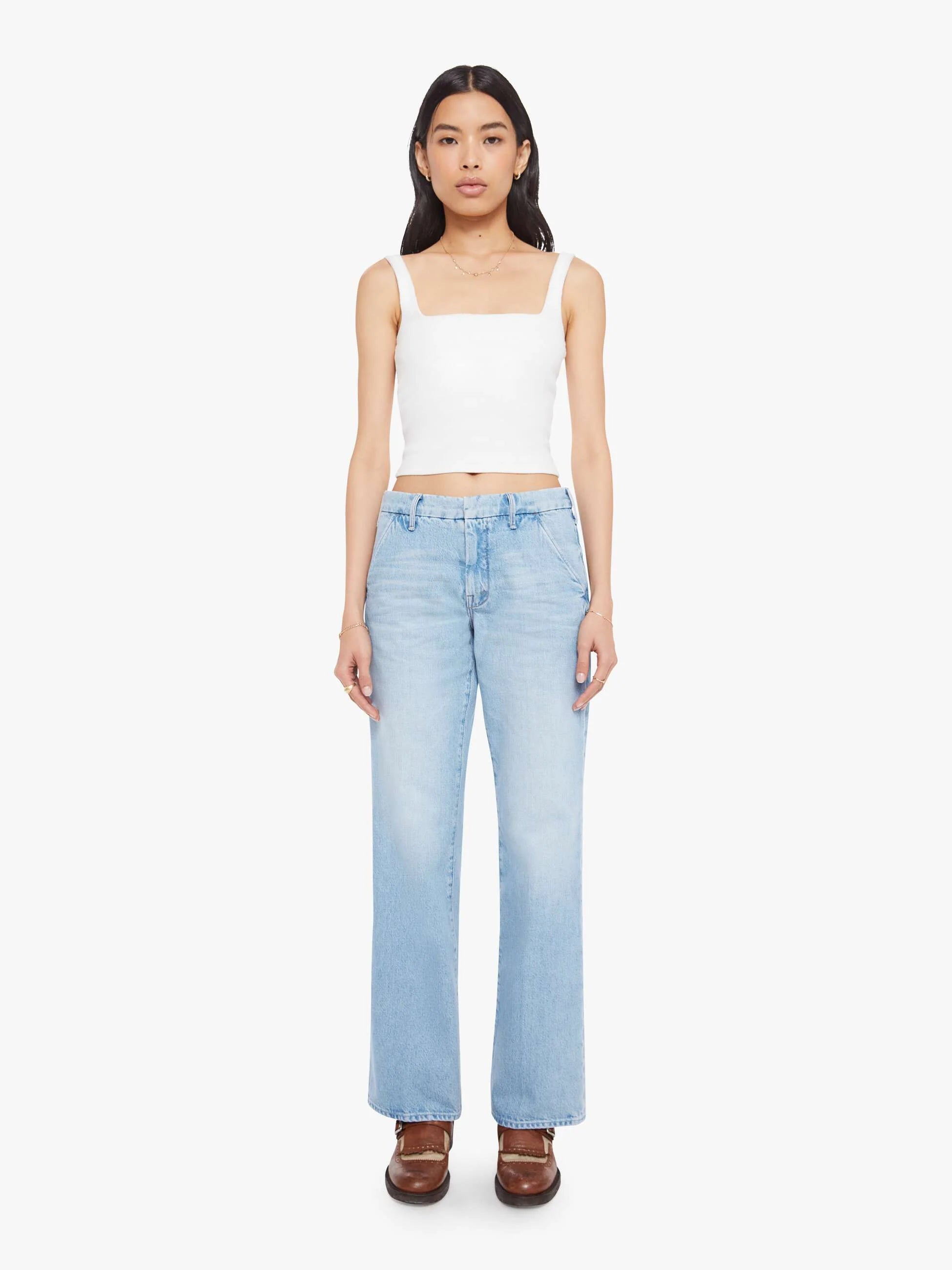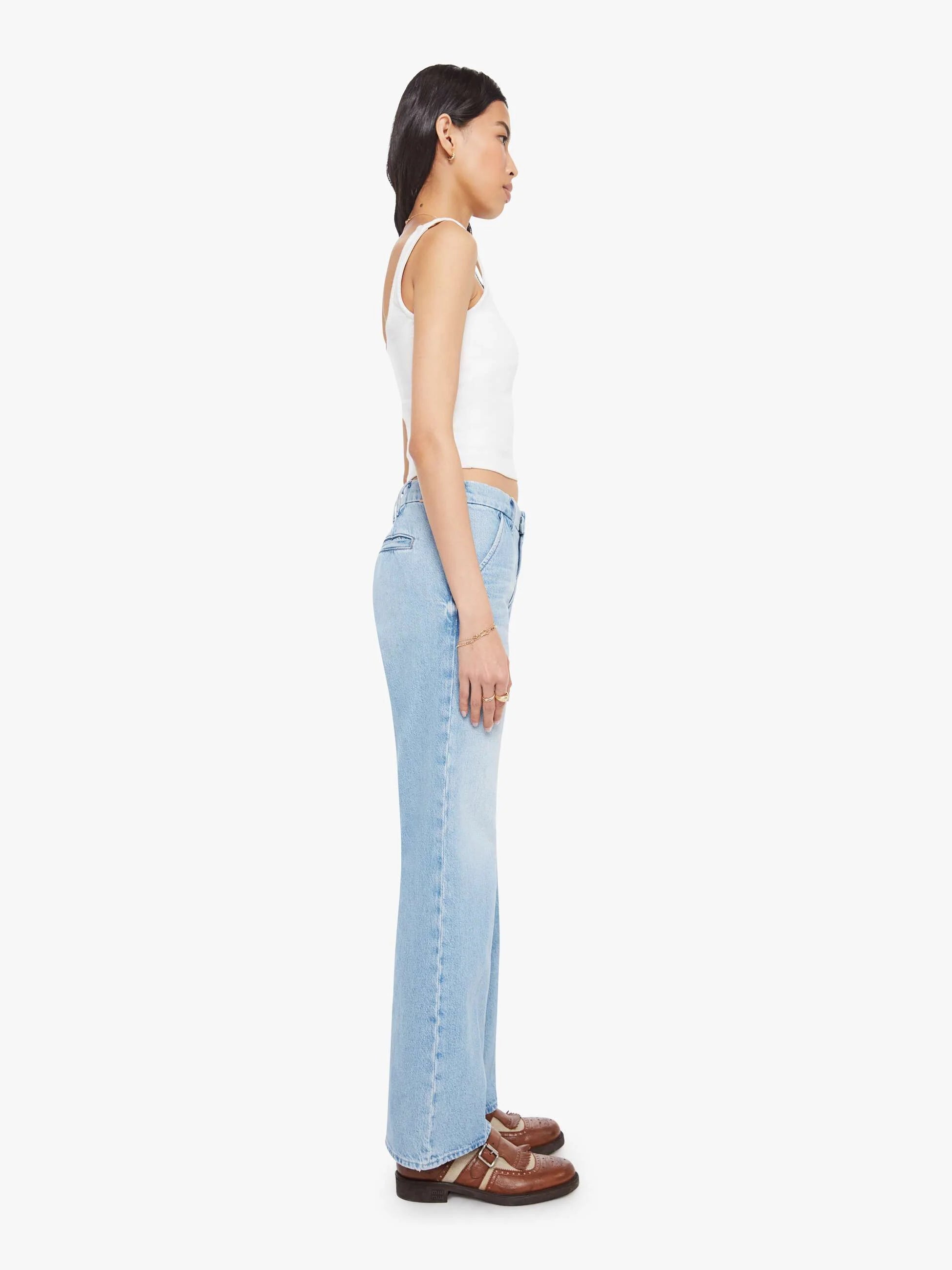 Hop in and experience effortless style with Mother's The Bookie Prep Sneak Jeans in This Is How I Roll. This high-rise bootcut features a zip fly, slit pockets, and a relaxed leg silhouette that moves with you. Crafted from rigid SUPERIOR denim in a crisp light blue, it showcases authentic whiskering and knee fading for that coveted lived-in look. The generous 32-inch inseam with a clean hem ensures a polished finish. Perfect for those who want vintage-inspired denim with modern comfort and undeniable edge.