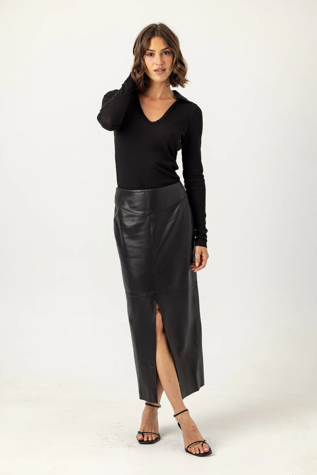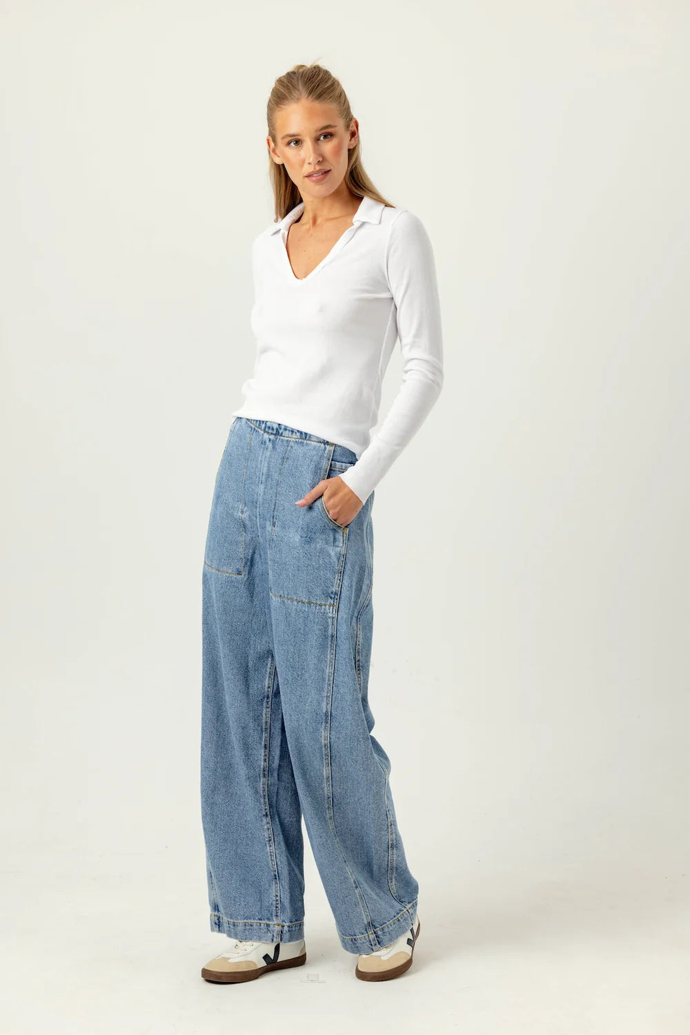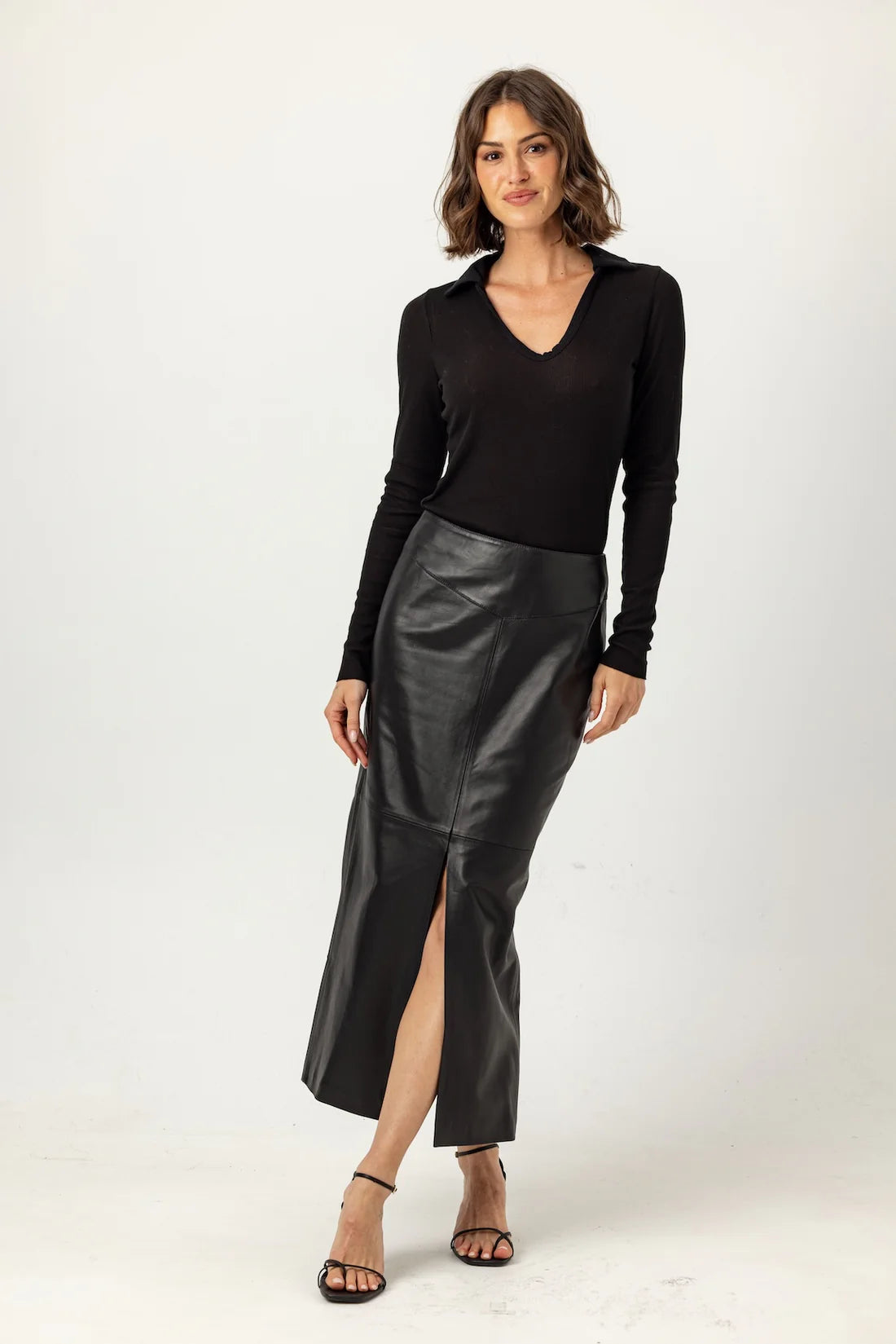 Elevate your everyday wardrobe with the Sundays Jamie Polo Shirt, crafted in our coveted rib fabric for a refined, contemporary edge. This isn't your typical polo—it features a striking contrast jersey collar and a gracefully plunging neckline that flatters every frame. The fitted silhouette hugs your body while long sleeves deliver timeless polish, and the thoughtfully proportioned length pairs seamlessly with mid-rise bottoms for endless styling possibilities. Meticulously made, washed, and preshrunk in Los Angeles, this versatile essential combines quality craftsmanship with modern design that works as hard as you do.