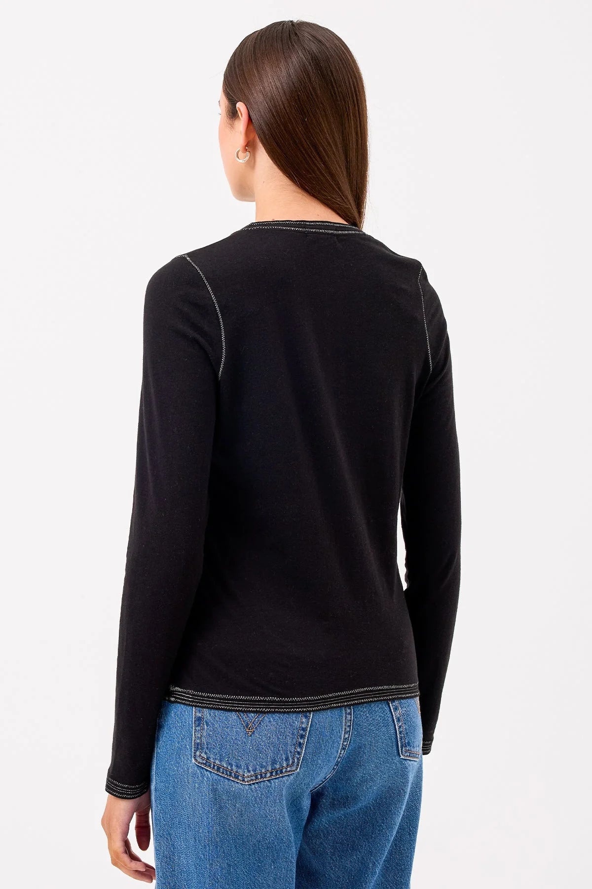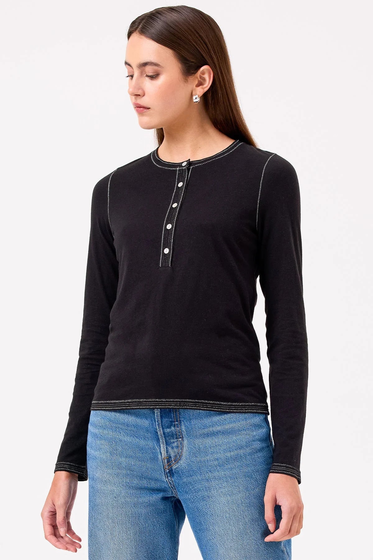 Discover the Goldie Celine Henley, where comfort meets distinct style. Crafted from a featherlight blend of 85% Peruvian pima cotton and 15% baby alpaca, it offers unmatched softness and warmth. The cozy knit enhances wearability, while decorative zig-zag stitching adds a unique, refined touch. Elevate your wardrobe with this exceptional Henley that combines classic appeal and luxurious feel.