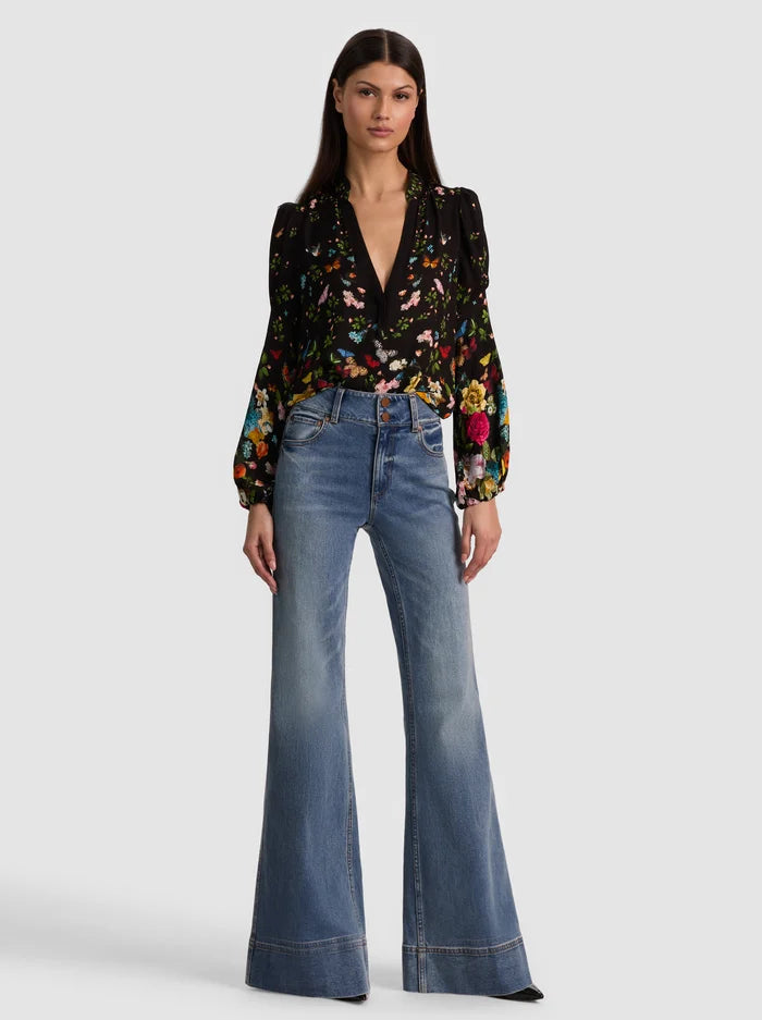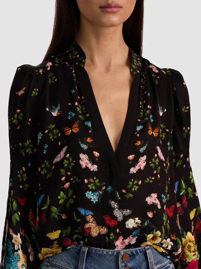 Feminine, floaty, and endlessly versatile—the Helen blouse is your new wardrobe essential. Crafted from printed double viscose that drapes with effortless elegance, this piece features romantic blouson sleeves, a soft collar, and an enchanting floral and butterfly print. The lightweight fabric begs to be layered: tuck it into high-rise denim for understated casual charm, or layer it under a blazer for a polished, soft-meets-structured aesthetic. Whether you're dressing down or dressing up, the Helen transforms any outfit into something beautifully intentional—making getting dressed feel like second nature.